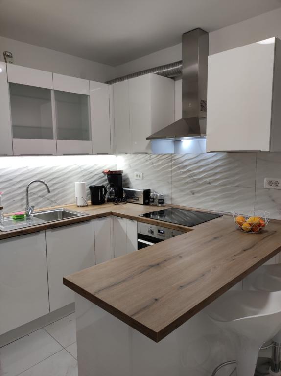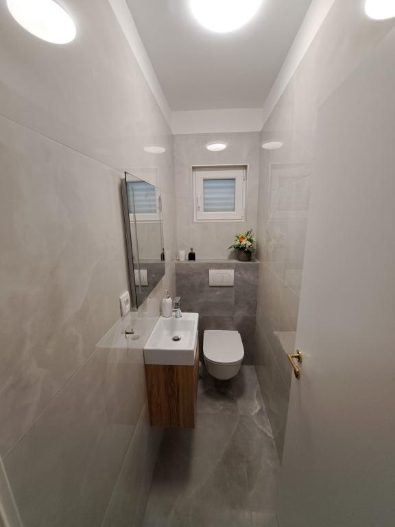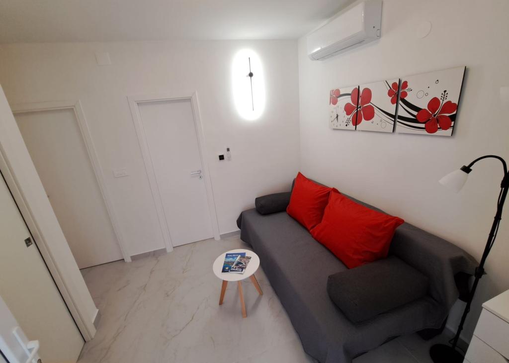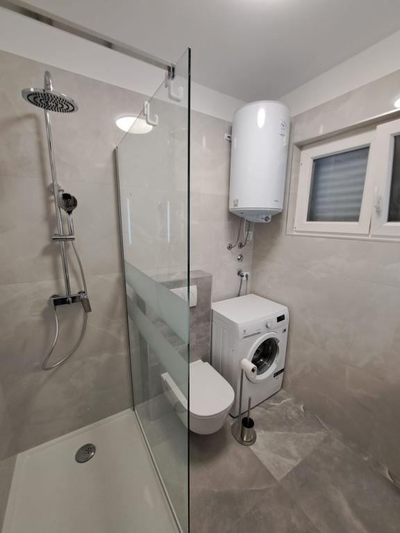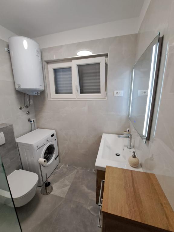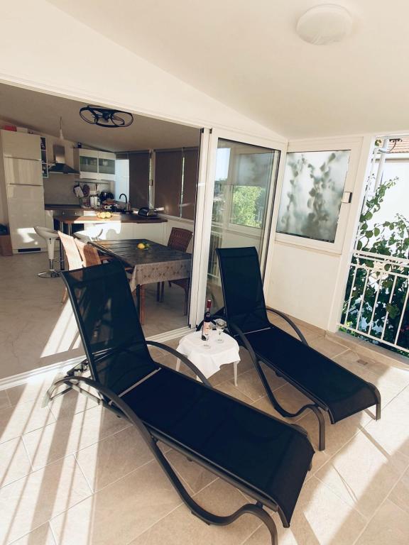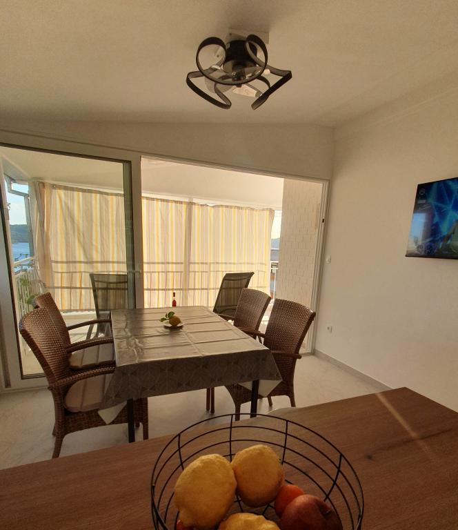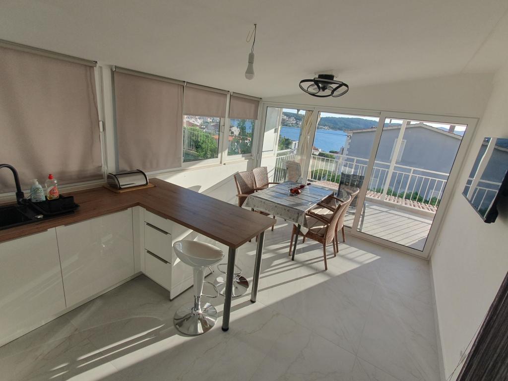 Apartament cu o terasă imensă, vedere la mare și duș exterior. Complet echipat și confortabil. Cartier linistit si foarte aproape de plaja. Proprietarii au fost foarte amabili, amabili si politicosi. Am fost întâmpinați cu vin croat și ulei de măsline minunat de casă. Vă mulțumesc foarte mult pentru ospitalitatea dumneavoastră minunată.