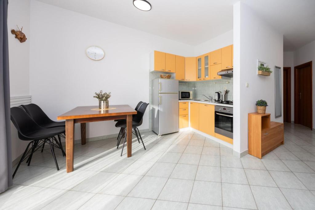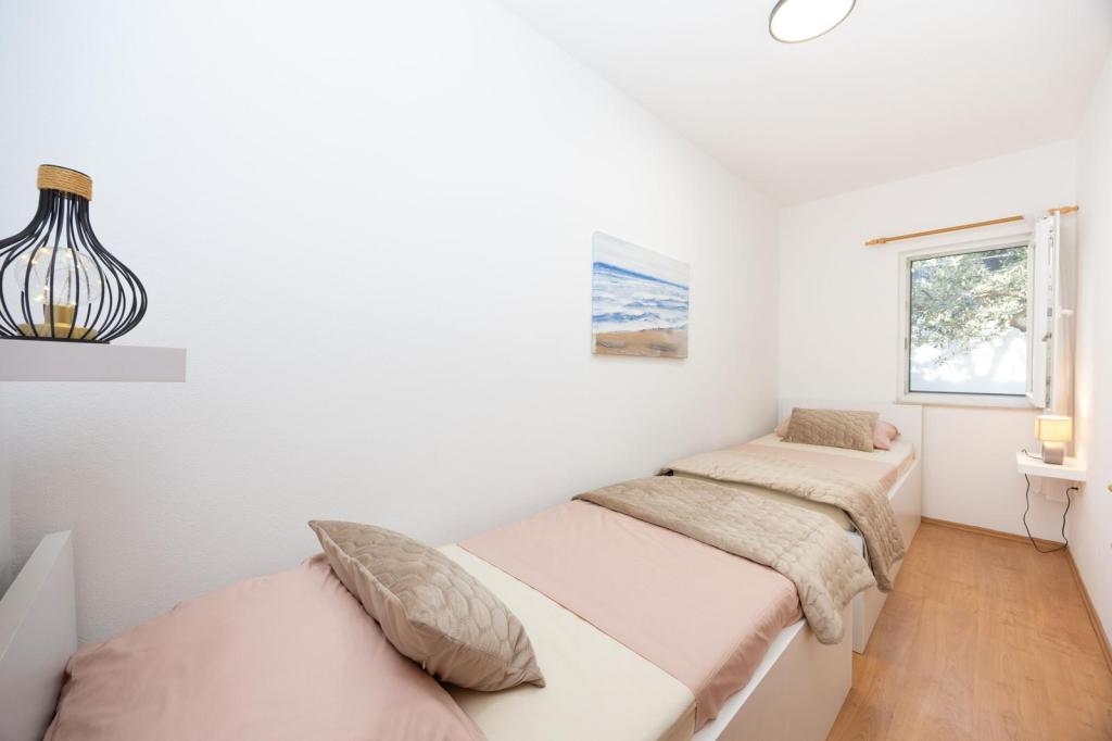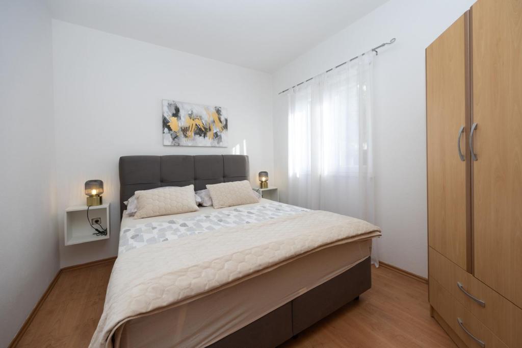 Apartamentele Nela sunt dotate cu camere confortabile, situat pe latura de sud a peninsulei Ciovo. Mai precis, în golful Movarštica. Punctul de vedere se întinde pe insulele Solta și Drvenik. In apropiere este frumosul oraș istoric Trogir, care încântă cu arhitectura și de divertisment ei. In apropiere se afla aeroportul Split, (6 km), orașul Kaštela (6km), Split (33 km). . Petrece vacanța într-un loc liniștit, relaxați-vă și bucurați-vă de mare idilică, mâncarea Bokun bună și un pahar de vin și apă. Apartamentele Nela sunt alegerea ideală pentru tine. Familia Rajcic te nestrepljivo de așteptat!