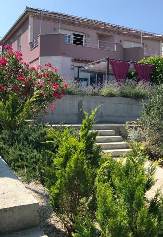 Noi apartamente moderne, la doar 40 de metri de mare și toată vara de divertisment, agrement. Cazare este ideal pentru familiile cu copii, deoarece nu există nici un trafic și o grădină mare ierburi este un fel de loc de joacă. În jurul casei este o grădină frumoasă îmbogățit cu ierburi mediteraneene și flori, și contribuie la o ședere plăcută. În plantația de măslini, care se află în curte, un semineu, unde oaspeții își pot pregăti preparate la grătar. Facilitatea este situat într-o zonă liniștită a insulei Brac, în orașul Trogir, într-un mic golf în apropiere de Trogir nepoštednoj și la 5 km de aeroportul Split.