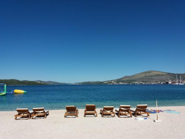 Taxa de rezidenta este inclusa in pret.Proprietarii pot asigura transportul de la aeroport, p la apartament pentru o taxă, și sunt întotdeauna la dispoziția oaspeților pentru orice nevoie. O statiune lung și frumos plajă, oferă o varietate de posibilități pentru vacanțe active, divertisment, restaurante si alte atractii pentru întreaga familie. Puteți închiria o varietate de barci, scutere, biciclete. În plus, există, de asemenea, un parc acvatic pentru copii, barci de remorcare o parașută, și există o gamă largă de excursie organizată o zi la insulele (picnic pește), Insulele Kornati, în Medjugorje, la cascadele Krka, Split, Dubrovnik, Lacurile Plitvice ... Etc. Între County și Trogir, în afară de drum, este posibil să se utilizeze linia de transport maritim permanente și 10 de minute de navigare, care sosesc în centrul orașului Trogir (mo