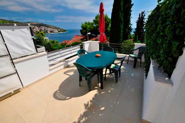 Într-o parte liniștită a insulei, frumoasa priveliste. Fiecare apartament are internet, SAT-TV, baie, bucatarie complet utilata, aer conditionat si loc de parcare. 70m plajă, centru 300m, Trogir 4 km, Split, 30 km.