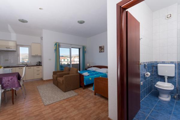 Vă dorim un călduros bun venit în vacanță însorită paradis în Trogir. Ne sunt situate la 7 km de aeroport "pe părți" și la 3 km de orașul Trogir. În această oază de frumusețe și plăcere ne-ar plăcea să se introducă perla "Villa Fumija", care oferă apartamente de lux și apartamente studio. Familie uita Radic oferă oaspeților săi de ani, cu calitatea de recunoscut de servicii și ospitalitate obiteli cu mulți ani de experiență cu. Cu o "Ville Fumia" oferă toate informațiile de vizitatori și organizarea de servicii de catering pentru a face șederea lor confortabil și complet "Villa Fumija" este de 100 m de mare și are o parcare privată pentru autoturisme și autobuze.