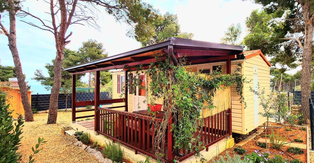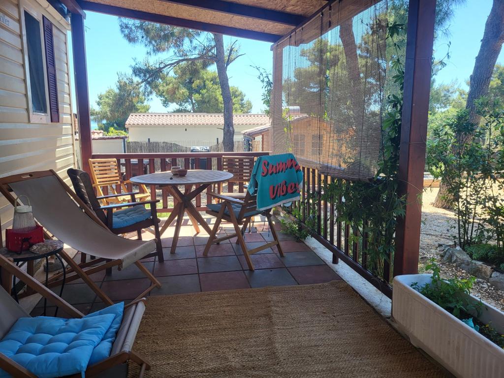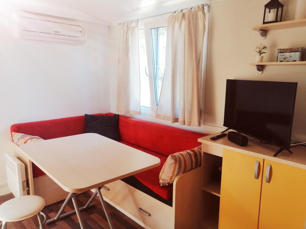 2 case mobile complet echipate situate în partea de sud a insulei Čiovo. Căsuțele pot fi închiriate separat sau împreună. Capacitatea de cazare a unei case este de 4 persoane. Casa are doua dormitoare. O cameră cu un pat dublu și una cu două paturi de o persoană. Casele mobile sunt situate lângă plaja Labadusa, unde există o tabără și 3 restaurante și un club pe plajă. Plaja este la doar 3 minute de mers pe jos, în timp ce puteți alege și plaje izolate sau propria stâncă unde nimeni nu vă poate vedea. Casele mobile sunt dotate cu toate facilitatile necesare unui sejur placut, Netflix si HBO Max sunt disponibile pe langa televizor. De asemenea, sunt disponibile o bucătărie de vară și un grătar cu gaz, precum și șezlonguri. Dușul solar exterior vă ajută să veniți de la plajă. Parcarea este gratuită și în interiorul clădirii.