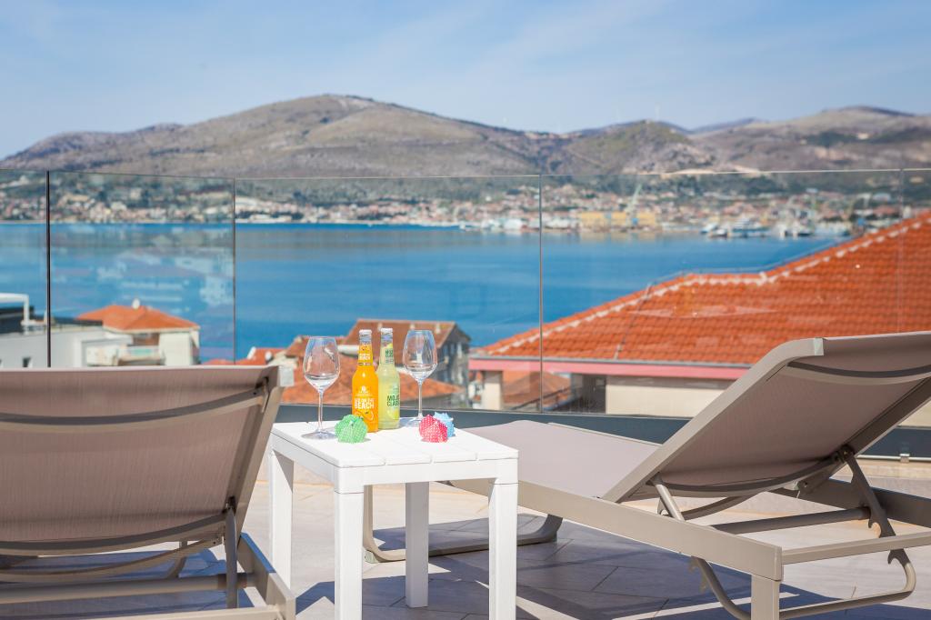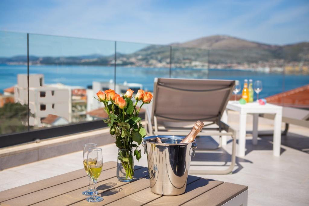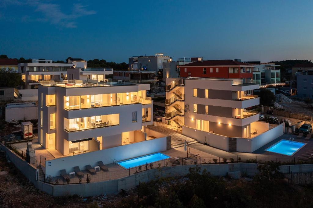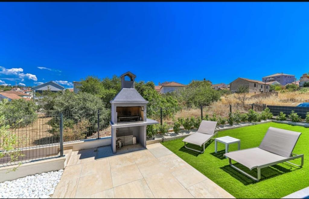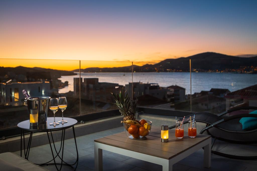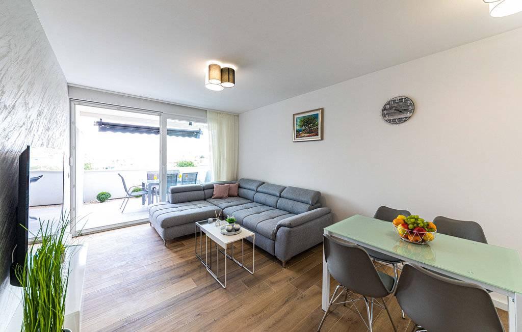 Această proprietate complet nouă și modernă (construită în 2021) este alegerea perfectă pentru oaspeții care caută un apartament de lux la mare în Croația. Proprietatea are o piscină privată exclusivă pentru oaspeți, trei locuri de parcare securizate și este situată la doar 250 de metri de plajă sau la doar 6 minute de mers pe jos. Apartamentul este situat la etajul 2 și oferă un nivel superior de confort și intimitate. Toate ferestrele sunt dotate cu obloane electrice și plase de țânțari, iar fiecare cameră are aer condiționat separat, asigurând o ședere plăcută pe tot parcursul anului. Proprietatea oferă o vedere panoramică frumoasă asupra întregului golf, care este evidentă mai ales seara. Oaspeții au acces la o terasă privată spațioasă de 70 m², ideală pentru relaxare și socializare cu familia și prietenii. Un grătar și echipamente complete pentru grătar, precum și șezlonguri, umbrele de soare, un duș exterior și toate echipamentele pentru piscină sunt disponibile gratuit. Exteriorul proprietății și parcarea sunt supravegheate video, în timp ce ușa de la intrare este antiefracție.