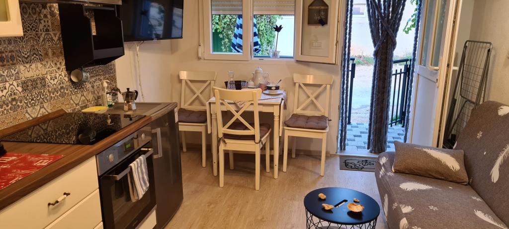 Apartament studio complet echipat în stil vintage. Proprietatea este situată la 5 minute de mers pe jos de plajă și de portul Grabar, de unde puteți închiria bărci cu motor și bărci, iar centrul orașului este la 10 minute de mers pe jos. Puteți închiria biciclete în centrul orașului la ". Gonzo”.