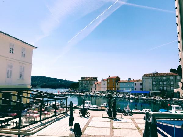 Apartament si camera cu baie sunt situate în centrul orașului Cres și au o vedere minunată la mare și de promenadă.