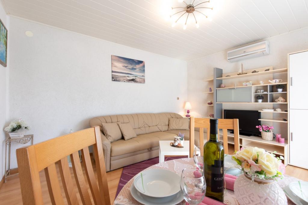 Apartament recent renovat la parterul unei case de familie, cu o curte spațioasă și parcare privată. Distanța până la plajă este de 3 minute de mers pe jos, precum și până în centrul orașului Crikvenica, unde toate evenimentele au loc în timpul verii. Apartamentul este dotat cu aer conditionat, toate electrocasnicele necesare, wi-fi, satelit, iar in curte este gratar. Curtea este împrejmuită și mare cu multă umbră, ceea ce ar fi potrivit în special pentru animalele de companie, care sunt cu siguranță binevenite.