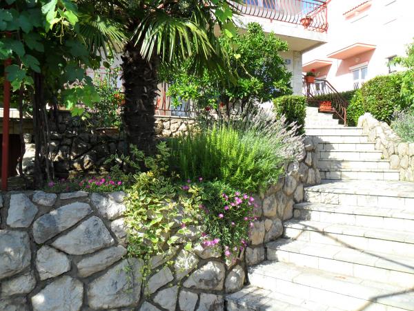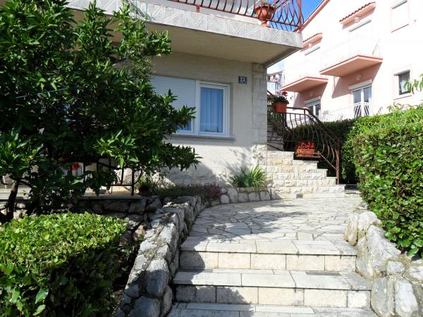 Apartamentul familiei Mikic este înconjurat de verdeață și situat pe o stradă liniștită, la doar 5 minute de mers pe jos de centrul orașului, cu vedere la insula Krk. Apartamentul este situat la parterul casei, este spațios și complet utilat. Este format dintr-o bucătărie, living, 2 dormitoare, baie și toaletă. Există, de asemenea, o terasă mare cu posibilitatea de a folosi un grătar. Loc de parcare gratuit este disponibil în fața casei. Internet Wi-Fi gratuit. Este singurul apartament din casă pe care îl închiriem, astfel încât oaspeții să aibă intimitate și liniște.