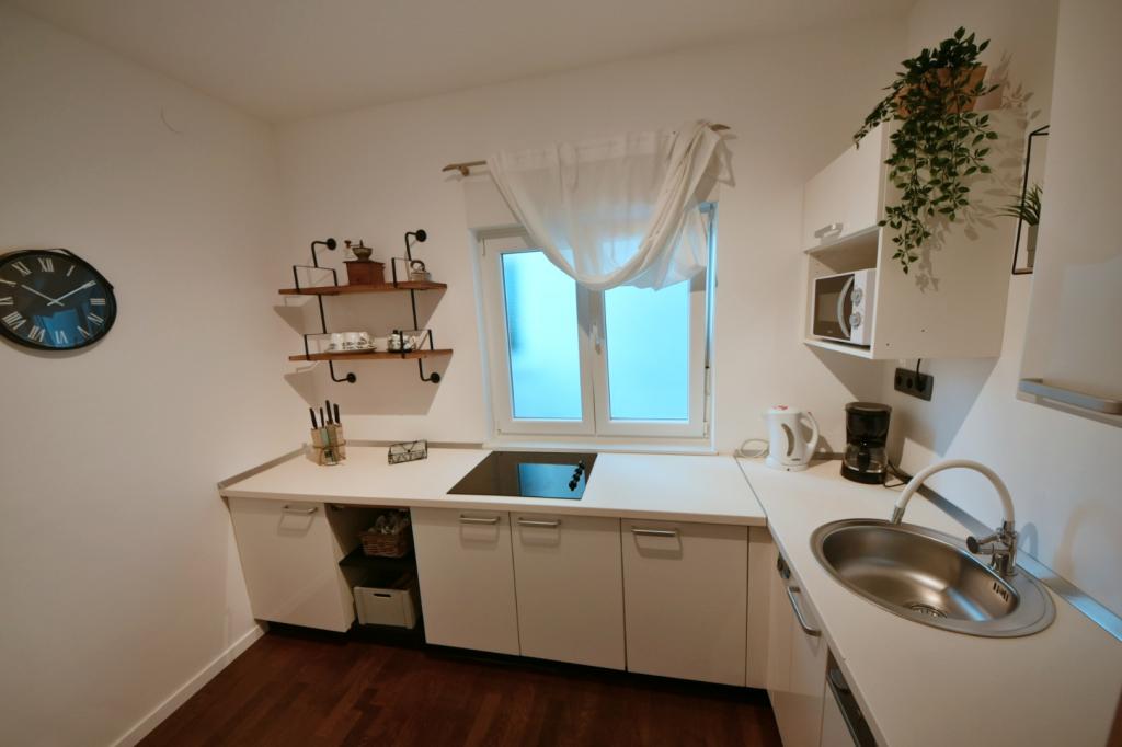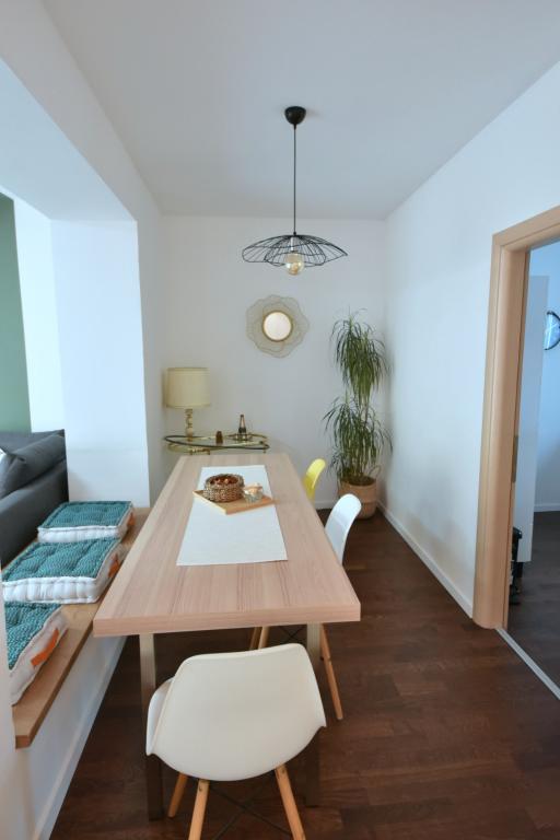 Apartament frumos decorat și confortabil. Are tot ce ai putea avea nevoie - suficiente vase, mașină de spălat, uscător de rufe, fier de călcat, uscător de păr, suficiente prosoape. Totul este în apropiere și ușor accesibil. Magazinele și piața se află la 5 minute de mers pe jos. Numeroase cafenele și restaurante se află chiar mai jos. Plaja cu un amestec de pietre mici și mari este chiar vizavi. Este cu nisip, la 5 minute de mers pe jos. Ceea ce ar putea fi o problemă pentru unii este urcatul la etajul 3 și zgomotul ocazional la ore târzii. Per total, am fost foarte mulțumiți și vom reveni (o familie cu doi copii).