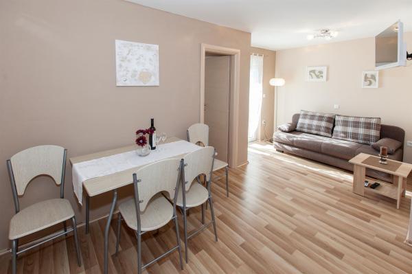 Taxa de rezidenta este inclusa in pret.Am stat în apartament 4 nopți. Doi adulți și un copil. Toate laudele proprietarilor pentru curățenie și amabilitate. Apartamentul are tot ce ai nevoie. Plaja este foarte aproape. Aveți și o piață în apropiere. Centrul orașului se află la 10 minute de mers pe jos de-a lungul coastei. De asemenea, puteți merge pe jos de-a lungul coastei (aproximativ 2,5 km) până la Selce, unde există o plajă cu nisip foarte frumoasă. Cu siguranță vom reveni.
