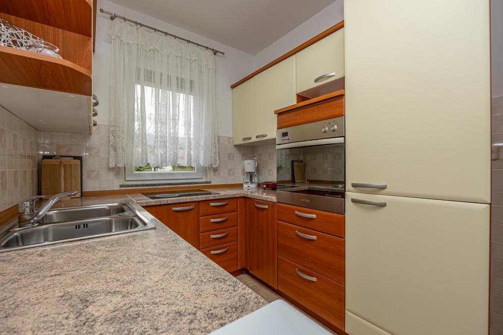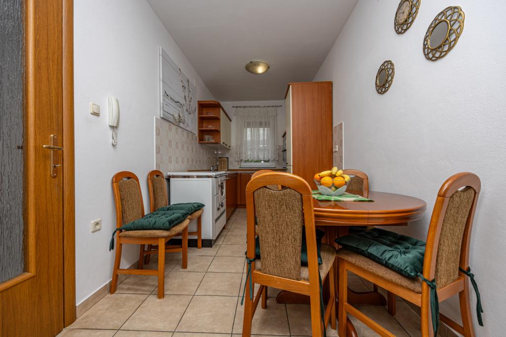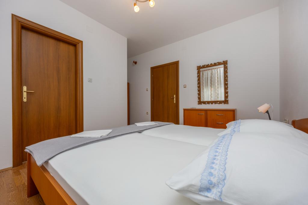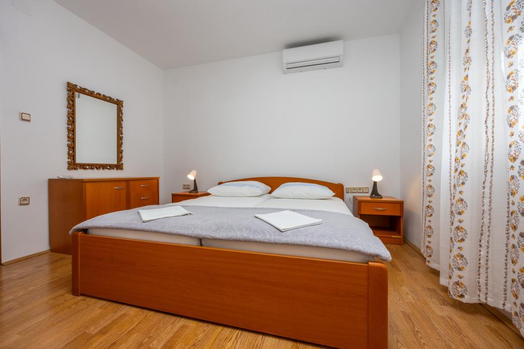 Vă oferim două apartamente mari de până la 5 persoane în Crikvenica. Casa de apartamente este situat la aproximativ 400 de metri de plaja principală de nisip din Crikvenica, la o plimbare de cinci minute. Apartament auto la parter are o terasă frumoasă în fața apartamentului, cu masă și scaune în umbră. Apartament Olga la primul etaj are un balcon mare cu vedere frumoasă la mare. La dispoziția dumneavoastră este un gratar mare, astfel încât să puteți folosi de fiecare dată când doriți, din moment ce ești oaspetele nostru. La dispoziția dumneavoastră vă oferim un loc de parcare mare, asigurată printr-un gard gratuit. Fiecare apartament este dotat cu Wi-Fi gratuit, aer conditionat si TV prin satelit. Fiecare apartament are o bucătărie, 2 dormitoare, living mare și o baie mare. Avem deja mai mult de 30 de ani în industria turismului și va garanta o vacanță minunată cu noi în apartamentele noastre.