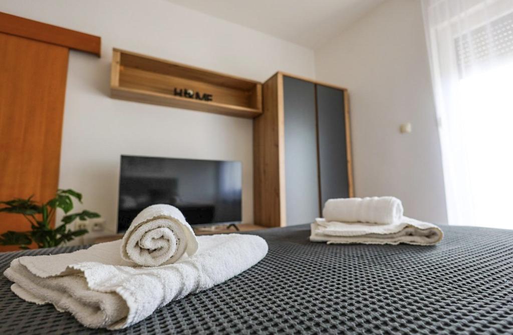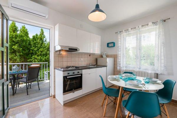 Apartamentul a fost uimitor. A fost echipat, prosoape curate, prosoape de ceai și hârtie igienică. Dormitorul era la nord și era plăcut. Teresa e grozavă. În timpul prânzului, ne-am îndreptat spre foișor la soarele de pe terasă. Este grozav la grătar și există o nuanță frumoasă. Nu este departe de mare. Singurul lucru pe care l-am pierdut în apartamentul care are cuptorul este placa. Cea mai mare surpriză pentru mine a fost "plaja plătită". Din fericire, eram aici când nu trebuia să plătim încă, nu era un sezon, dar fără rușine i sa dat în fiecare zi 15 kun. Și, din păcate, locația apartamentului se află la capătul plajei plătite, astfel că nu va mai fi nevoie de 1 km până la centrul plajei publice.