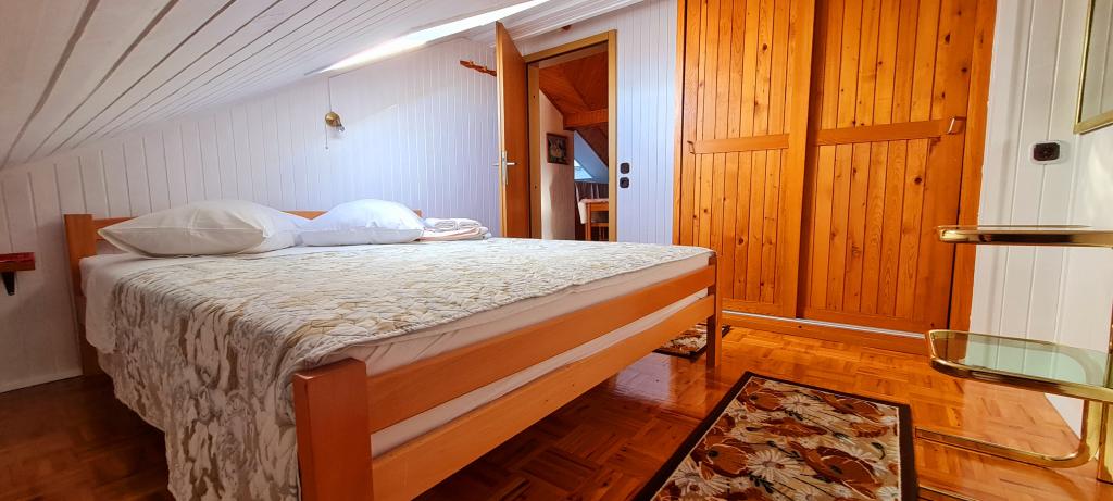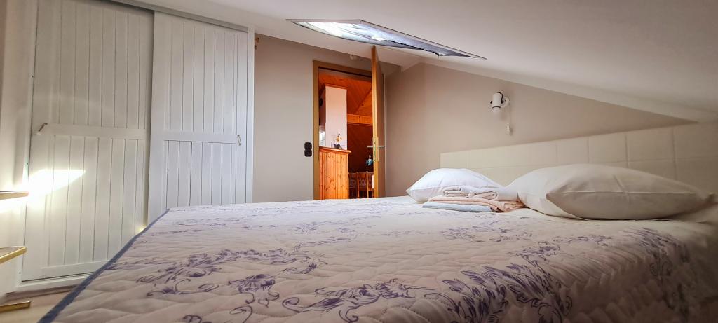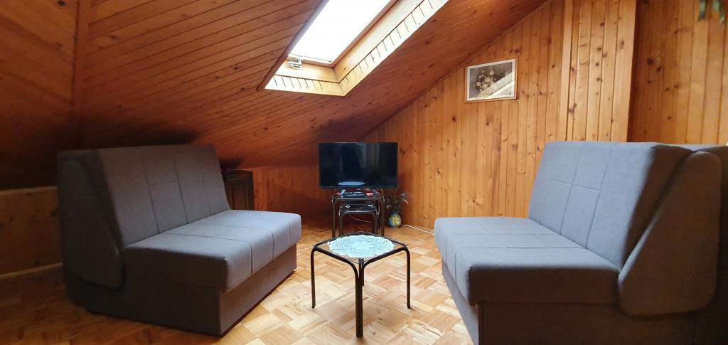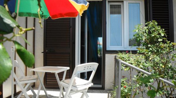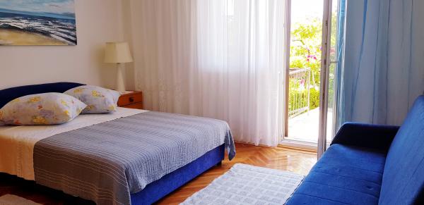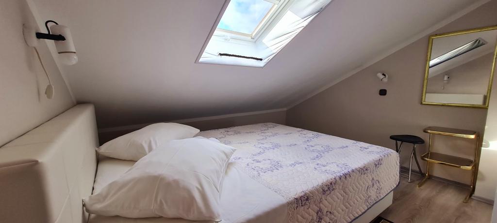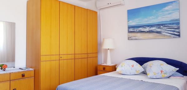 Primul apartament este situat la mansardă și este format din 2 dormitoare cu paturi duble, o baie cu duș, un living cu 2 canapele extensibile, o bucătărie și o sufragerie, un balcon mai mic cu vedere la mare, o cameră mai mare. terasa pe acoperis si intrare separata. Al 2-lea apartament este situat la parter si este format din 2 dormitoare cu paturi duble (1 pat suplimentar in fiecare camera), baie cu dus, bucatarie, terasa spatioasa inchisa cu masa de luat masa, terasa mai mica de gradina, terasa mare cu vedere la mare si un intrare separată. Cameră cu pat dublu, baie privată cu duș, terasă în grădină cu scaune și intrare separată.