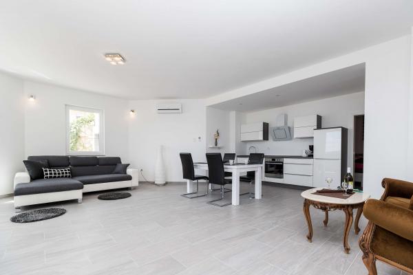 Apartamente moderne si dotate luxos, cu un balcon/terasa extrem de mare, intr-o zona linistita din Crikvenica. Casa este inconjurata de o gradina mare cu plante mediteraneene. Este situat la 7 minute de mers pe jos de plajă și la 10 minute de mers pe jos de centrul orașului.