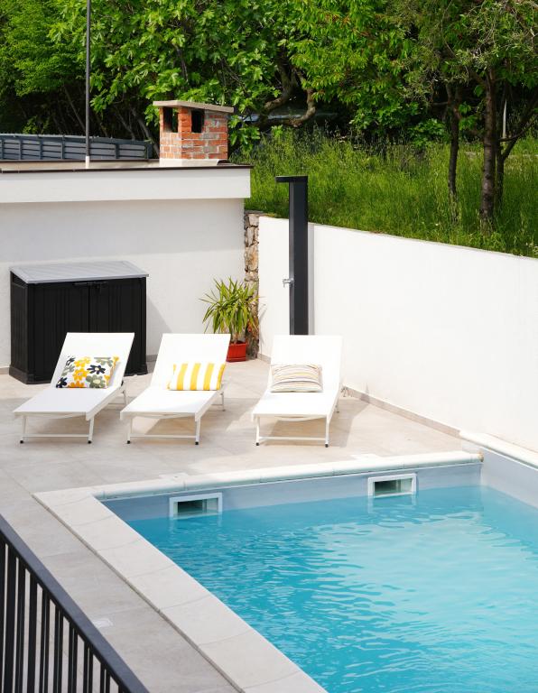 Proprietatea oferă oaspeților o piscină privată în aer liber, dotată cu un duș solar exterior, un grătar și o zonă de socializare cu o bancă și o masă robuste. Există șezlonguri lângă piscină. Piscina este deschisă între orele 09:00 și 20:00, iar utilizarea se face pe propriul risc. Regulile de utilizare și conduită sunt disponibile în apartament și pot fi convenite ulterior cu proprietarii. Notă: Piscina este deschisă între 15.05. și 01.10.2024. Parcarea se află chiar lângă proprietate.