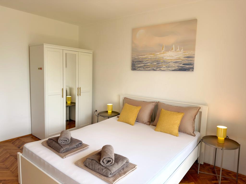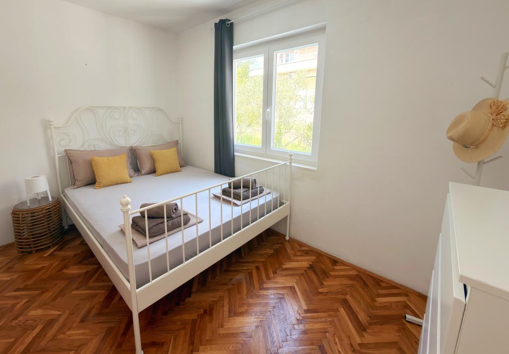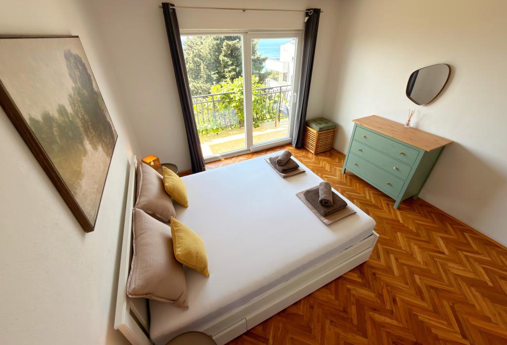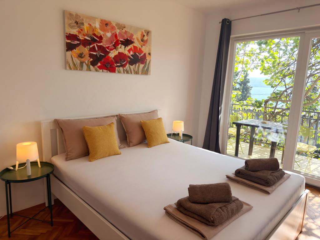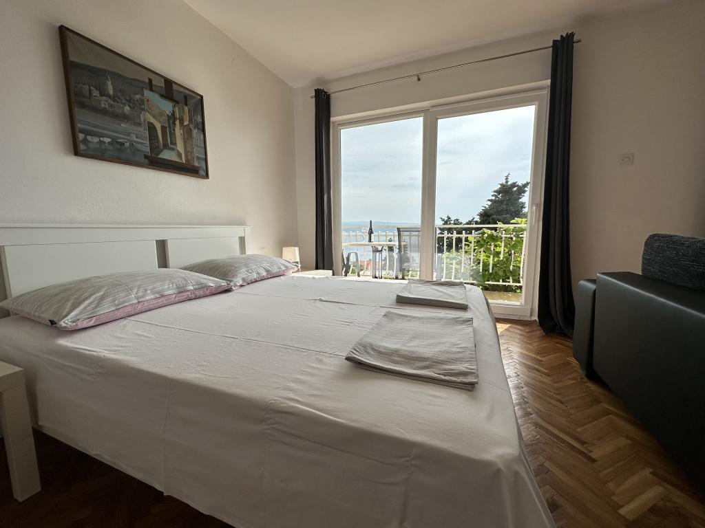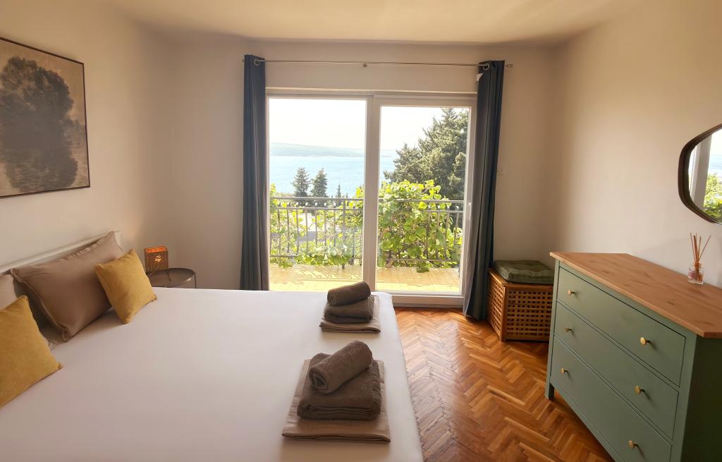 Apartamentele Matejčić sunt situate în Crikvenica, la adresa Prćavac 8 - la doar 350 de metri (7 minute de mers pe jos) de plaja cu nisip Crni Mol. Aceste apartamente spațioase pot găzdui până la cinci persoane și sunt formate din două dormitoare separate, un living, o bucătărie complet utilată și o baie. Fiecare apartament are o terasă cu o vedere frumoasă la mare, unde vă puteți bucura de momente de relaxare și de peisajul frumos. Apartamentele sunt dotate cu toate facilitățile necesare pentru un sejur plăcut. Locația apartamentului este excelentă, deoarece se află în imediata vecinătate a plajei, dar în același timp suficient de departe de zgomot și aglomerație. Există magazine, restaurante și alte atracții turistice în apropiere pe care le puteți explora în timpul sejurului dumneavoastră.
