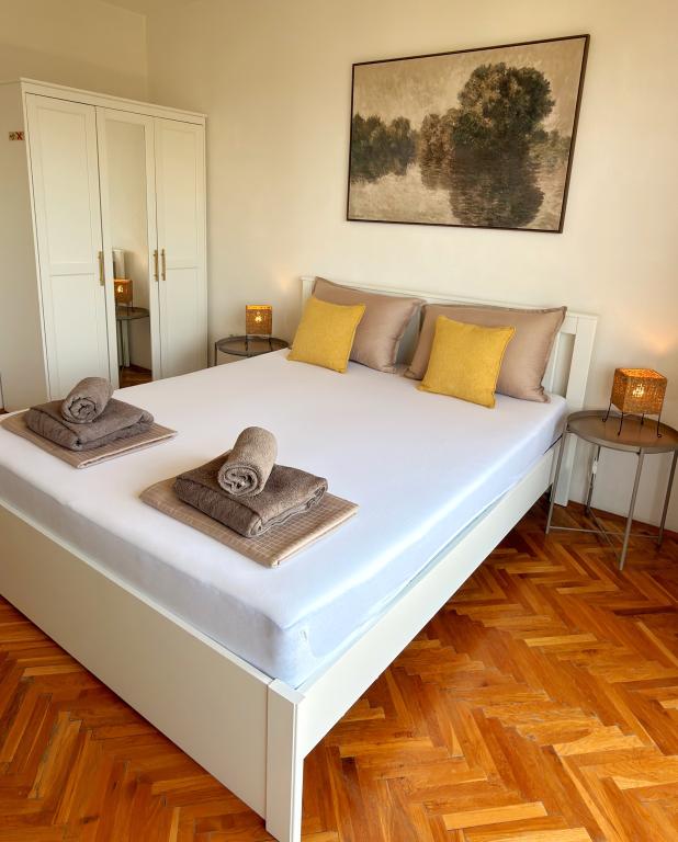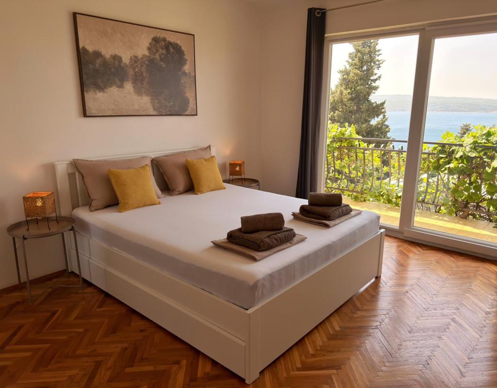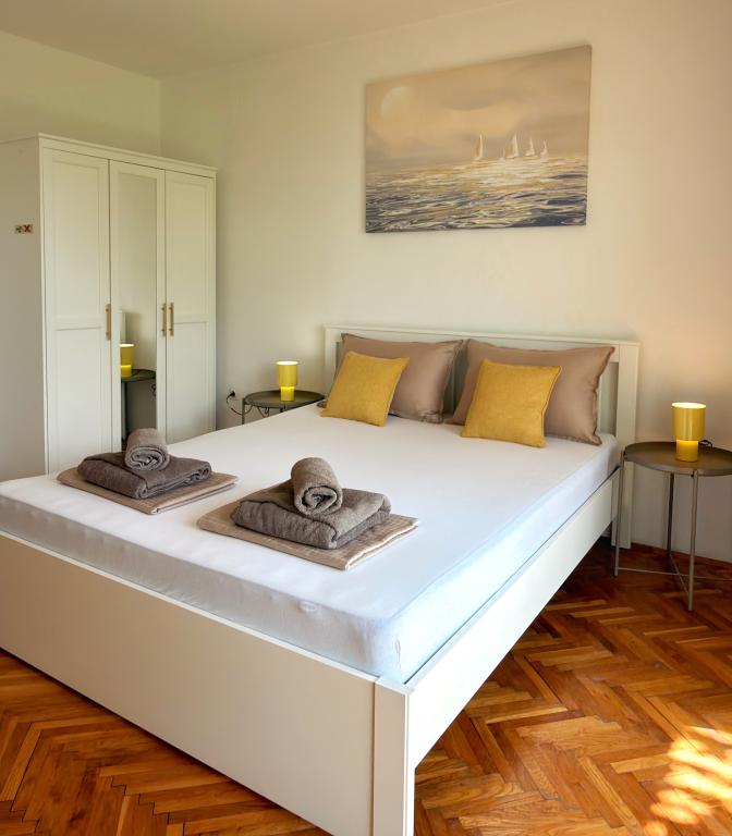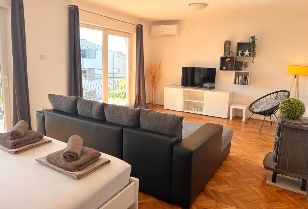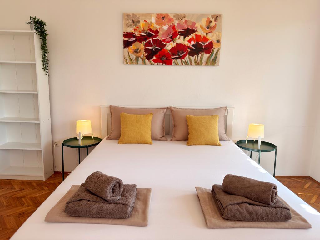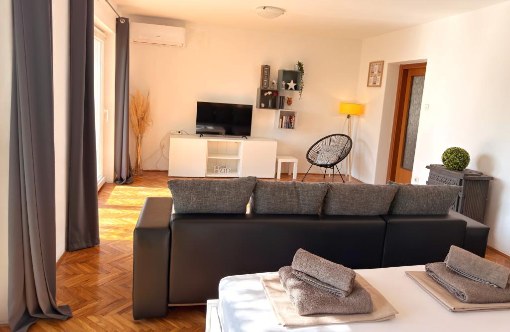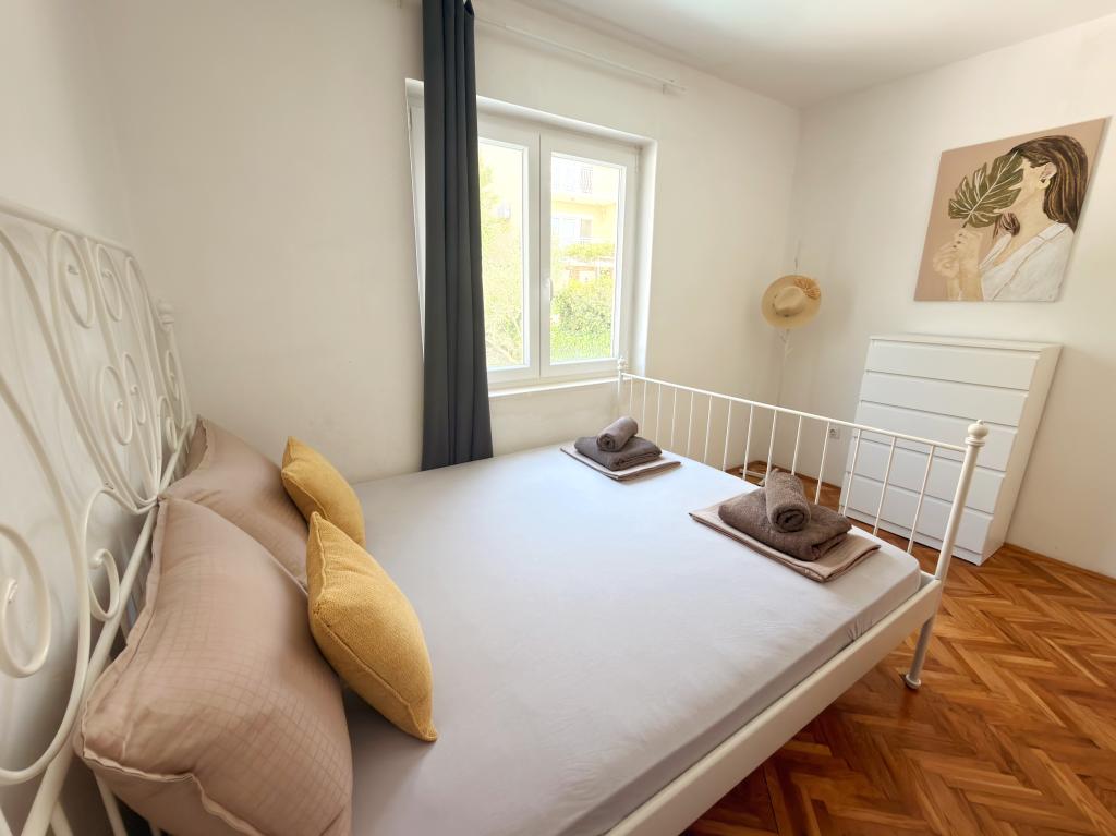 Apartamentele Matejčić sunt situate în Crikvenica, la adresa Prćavac 8 - la doar 350 de metri (7 minute de mers pe jos) de plaja cu nisip Crni Mol. Aceste apartamente spațioase pot găzdui până la cinci persoane și sunt formate din două dormitoare separate, un living, o bucătărie complet utilată și o baie. Fiecare apartament are o terasă cu o vedere frumoasă la mare, unde vă puteți bucura de momente de relaxare și de peisajul frumos. Apartamentele sunt dotate cu toate facilitățile necesare pentru un sejur plăcut. Locația apartamentului este excelentă, deoarece se află în imediata vecinătate a plajei, dar în același timp suficient de departe de zgomot și aglomerație. Există magazine, restaurante și alte atracții turistice în apropiere pe care le puteți explora în timpul sejurului dumneavoastră.