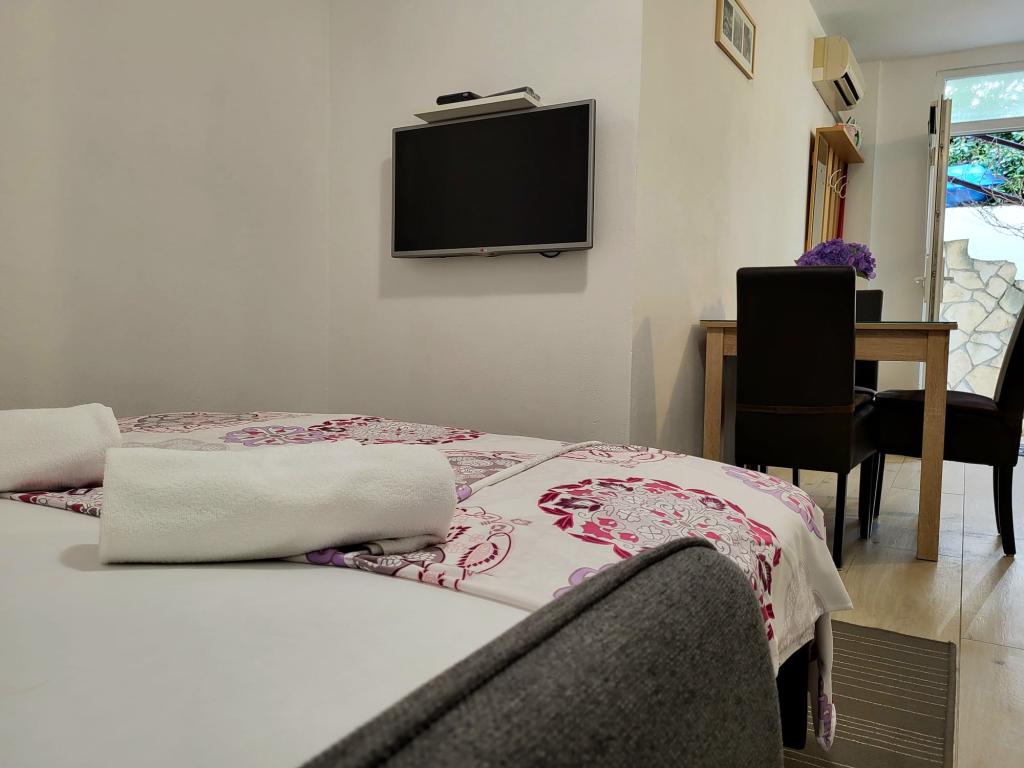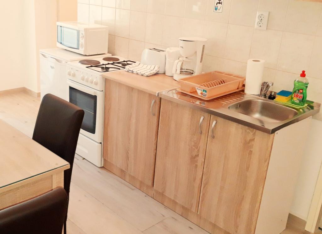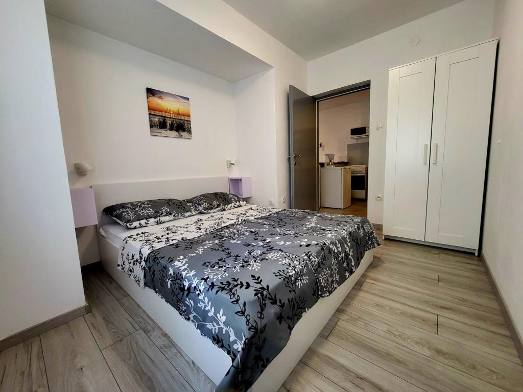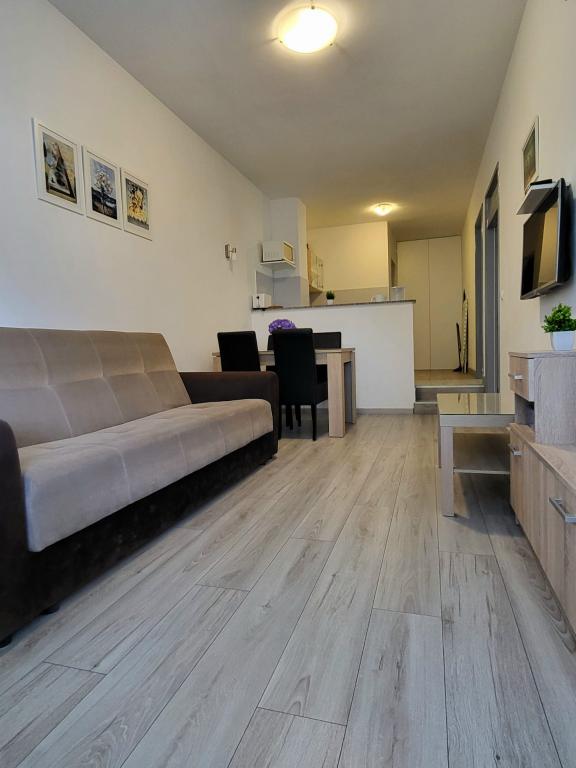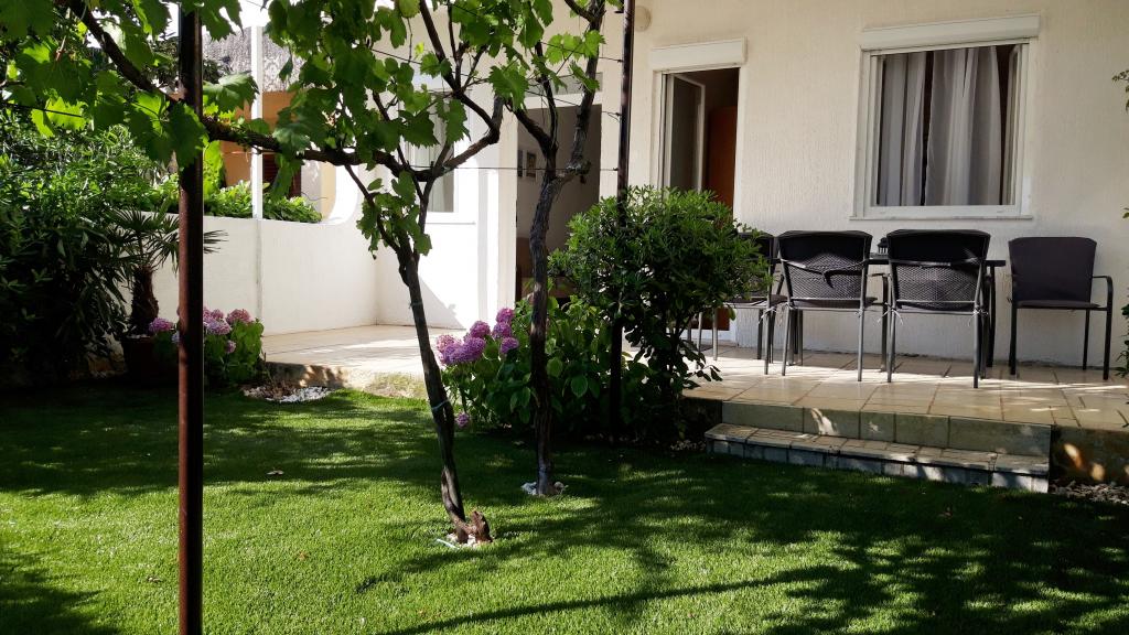 apartamente cu terasă și grădină mică, parcare gratuită, Wi-Fi, 280m de la mare, 50 de magazine și o cafenea, o plimbare liniștită, 12min de-a lungul coastei în oraș complet mobilat.