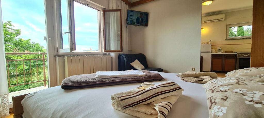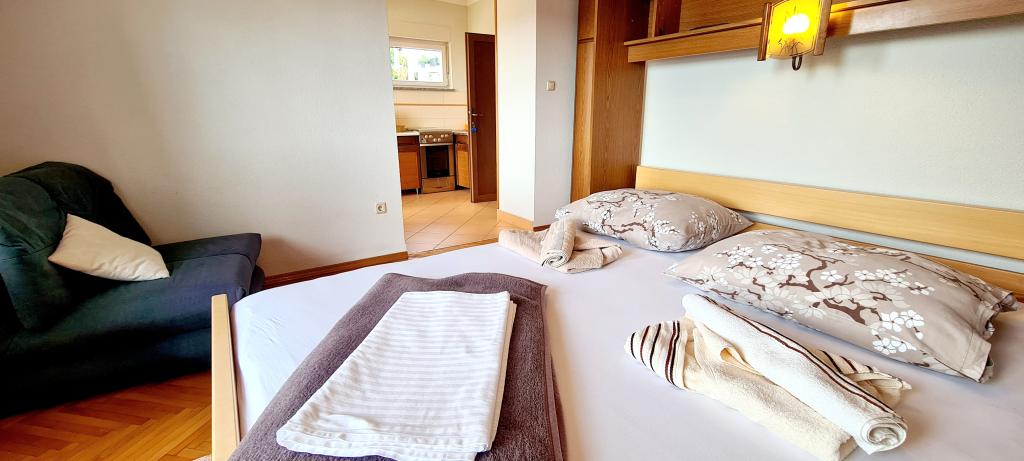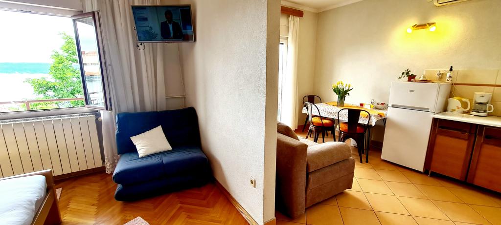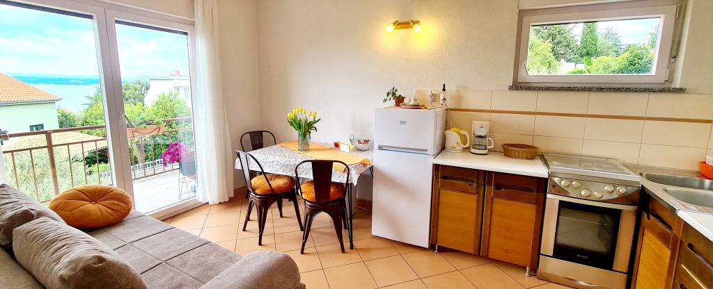 Bine ați venit la apartamentele noastre din Crikvenica! Apartamentul 2+1 este situat la Tina Ujevića 8 în Crikvenica la etajul 1 al unei case familiale; Este compus din două camere comunicante - un dormitor cu o baie și toaletă și o bucătărie. Are un balcon cu vedere frumoasa la mare, iar in spatele casei se afla o terasa care poate fi folosita. Potrivit pentru 2 + 1 persoane. Apartamentul dispune de aer conditionat, TV prin satelit si WI-FI. Este asigurată parcare. În apropiere sunt frumoase plaje cu nisip și stânci.
