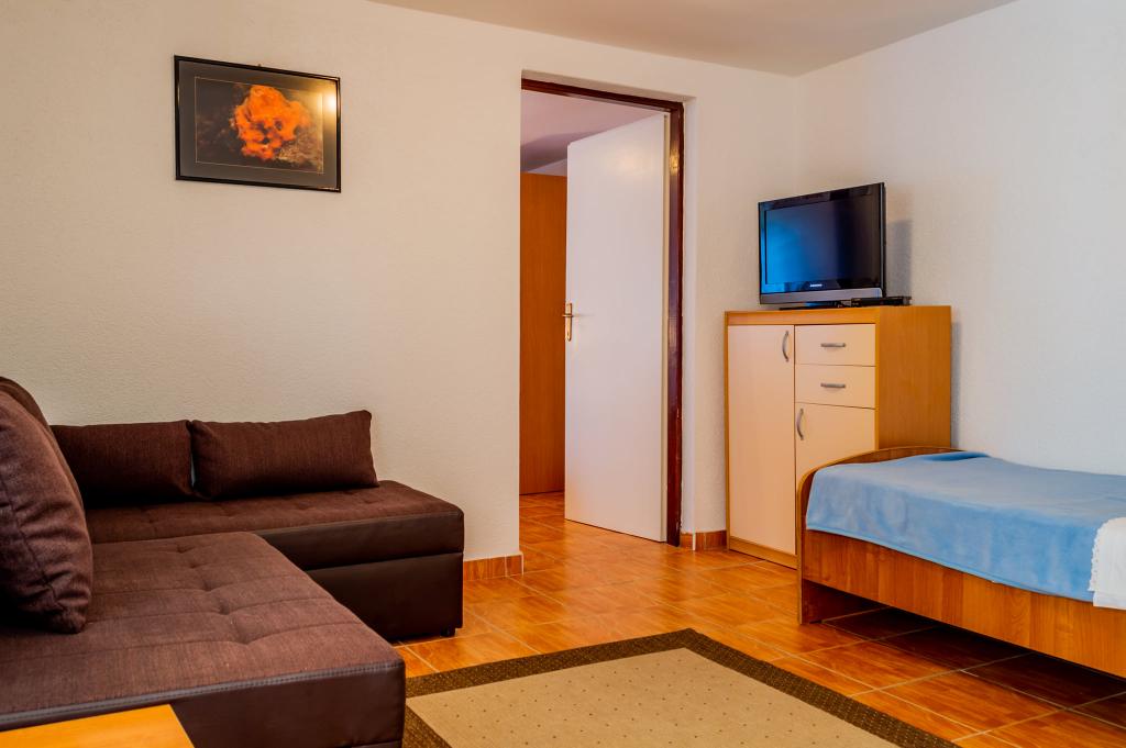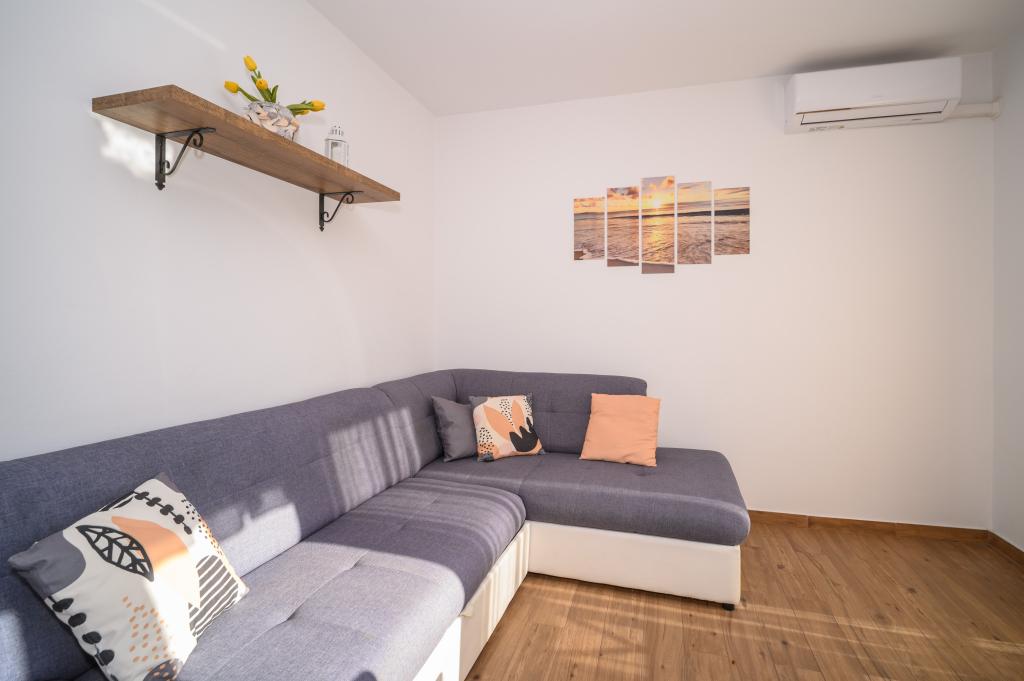 Apartamente într-o locație liniștită, la doar 50 m de plajă și la 100 m de alte facilități, cum ar fi restaurant, magazin, loc de joacă pentru copii, teren de sport. Fiecare apartament are propriul loc de parcare, iar oaspeții au acces la un grătar și o terasă mare. Prețul de închiriere include Wi-Fi, utilizarea aerului condiționat și TV/satelit. Apartamentele sunt noi, moderne și confortabil echipate și oferă o vacanță ideală fără a fi nevoie să folosiți o mașină.