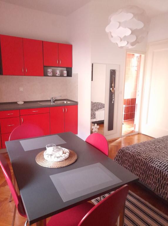 Crikvenica este un loc în care literalmente toate vârstele pot petrece o vacanță plăcută și împlinită, indiferent dacă călătorești în familie, în afaceri sau cu prietenii. Apartamentele studio moderne și recent decorate pot face parte din vacanța dumneavoastră. Unitățile de cazare sunt doar pentru două persoane. Casa, in care sunt unitati de cazare, este situata intr-un loc foarte atractiv. În doar câteva minute de mers pe jos, puteți ajunge la plajă, în piața orașului și la toate celelalte facilități (magazine, restaurante, cafenele, farmacie, oficiu poștal, stație de autobuz etc.). Apartamentele studio (pentru 2 persoane) sunt dotate cu TV, Wi-fi, aer conditionat, baie proprie si bucatarie. Parcarea este posibilă într-o locație la 5 minute de casa noastră... 10€ pe zi... Nu închiriem pentru mai puțin de 4 nopți. Așteptăm cu nerăbdare sosirea dumneavoastră!