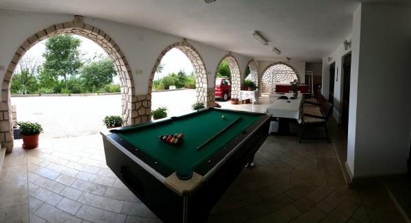În cadrul facilității, punem în evidență piscina exterioară cu apă dulce, lângă care sunt amplasate șezlonguri pentru ca oaspeții să se odihnească și să stea. Există și un duș în aer liber chiar lângă piscină. Casa cu grătar a devenit o parte distinctă a Villa Drago, iar oaspeții o folosesc adesea pentru a pregăti cina sau pentru a petrece timp împreună. Pentru cei care doresc o vacanță mai activă, avem și o sală de sport de acasă dotată cu aparate cardio și greutăți olimpice în cadrul unității. Pe lângă dotările suplimentare enumerate, la parterul casei se află o terasă pentru adunări sociale, o masă de biliard și două biciclete pentru utilizare de comun acord cu proprietarii. Parcarea este situată chiar lângă clădirea propriu-zisă. NOTĂ: Piscina este deschisă din 01.06. până la 14.09.2024. ani.
