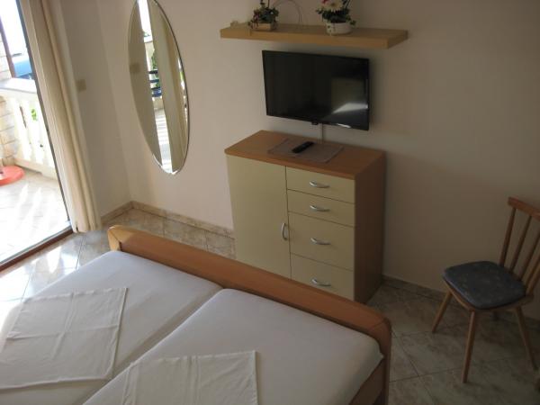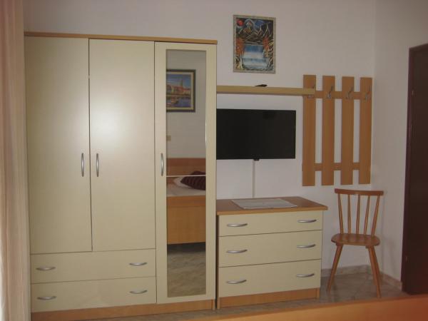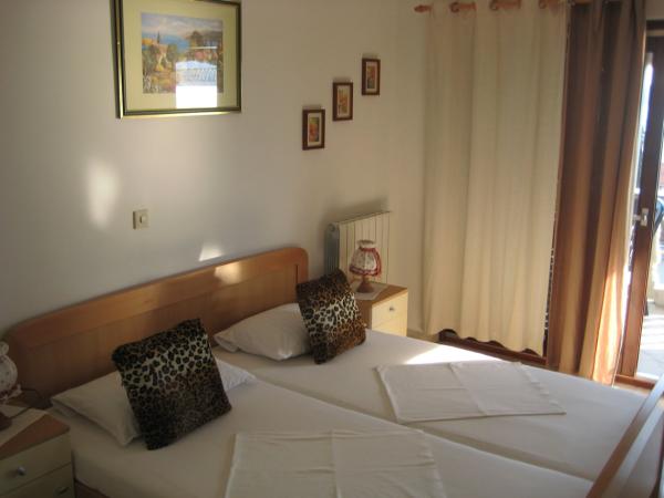 Taxa de rezidenta nu este inclusa in pret.Am petrecut o perioadă minunată în aceste apartamente. Locație bună, camere curate și plate, cu facilități bine dotate, nu departe de mare, multe plaje la 5-10 minute de mers pe jos. Majoritatea camerelor au intrare separată, ceea ce este foarte confortabil. Camerele sunt bine planificate pentru a menține echilibrul temperaturii, așa că nu aveți nevoie de aer condiționat. Locația apartamentelor este, de asemenea, bună, deoarece puteți ajunge la cel puțin trei supermarketuri în 5 minute cu mașina, inclusiv un Lidl mare la 10-15 minute de mers pe jos. Absența rușilor gălăgioși și brutali este un privilegiu. Apa mării este curată și calmă, iar plajele sunt ușor aglomerate, dar veți găsi întotdeauna un loc separat. Poate că un wi-fi puțin slab va aduce disconfort, dar pentru noi, asta nu a fost o mare problemă, pentru că foloseam roamingul pe internet. Proprietarii au fost foarte ospitalieri și cordiali.