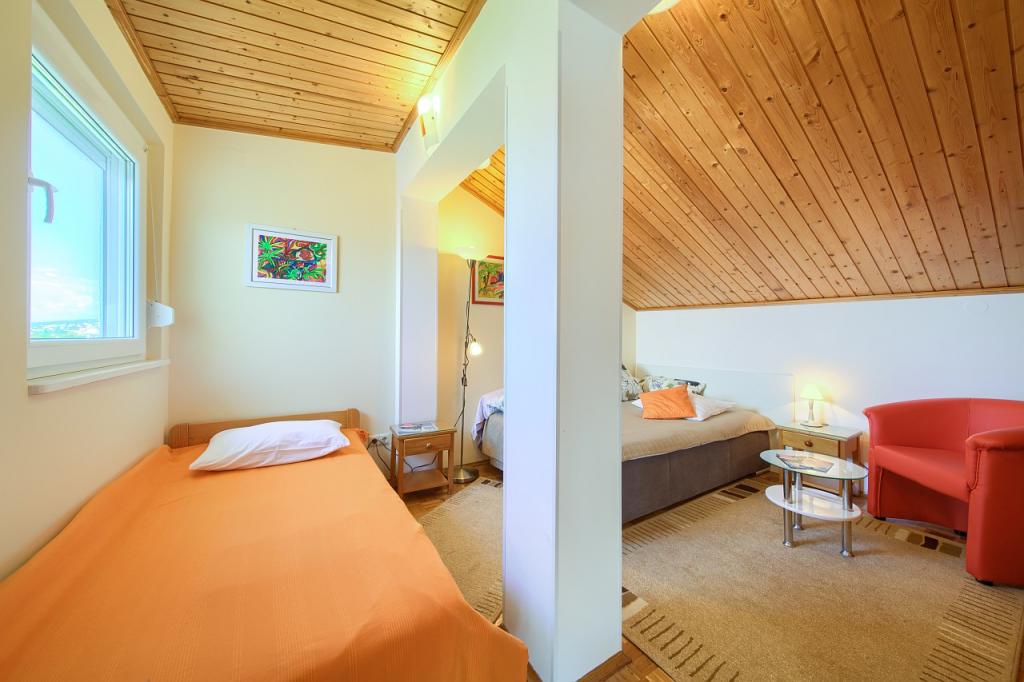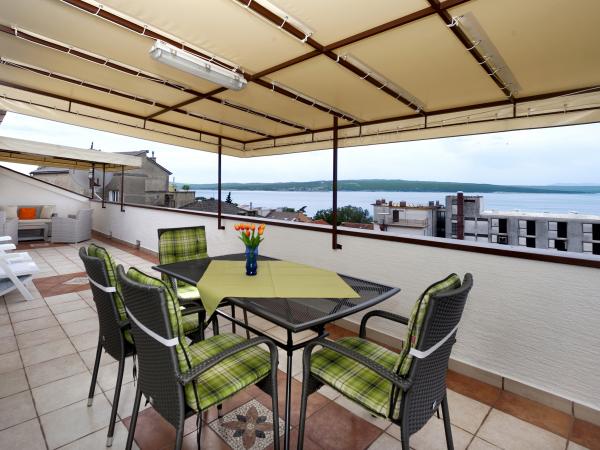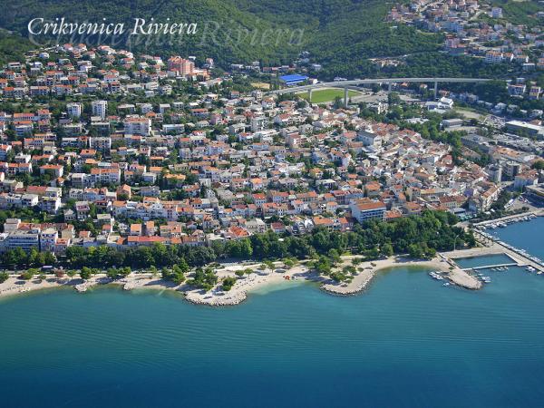 Vilă împrejmuită în centrul orașului Crikvenica, în al doilea rând la mare, la 3 minute de mers pe jos de plajă și promenadă și la 5 minute de centru. Grădină amenajată, grădină cu grătar și șemineu pentru oaspeți și parcare închisă. Casa dispune de 4 apartamente confortabile cu vedere la mare, grădinile orașului și insula Krk. Clasificare de trei și patru stele. 3 apartamente pentru 4-5 persoane și 1 apartament pentru 2-3 persoane. 4 stele. Toate APARTAMENTELE sunt dotate confortabil, cu terasă sau balcon propriu, TV prin satelit, internet wireless, aer condiționat, seif pentru bani și obiecte de valoare, bucătării utilate cu toate electrocasnicele și posibilitatea de a utiliza grătarul de grădină. Zile de funcționare: 1.05.-30.09. în fiecare an. Perioada de iarnă: la cerere specială, apartament pentru 4 persoane și apartament pentru 2 persoane cu încălzire centrală, balcoane și vedere la grădinile orașului și insula Krk.