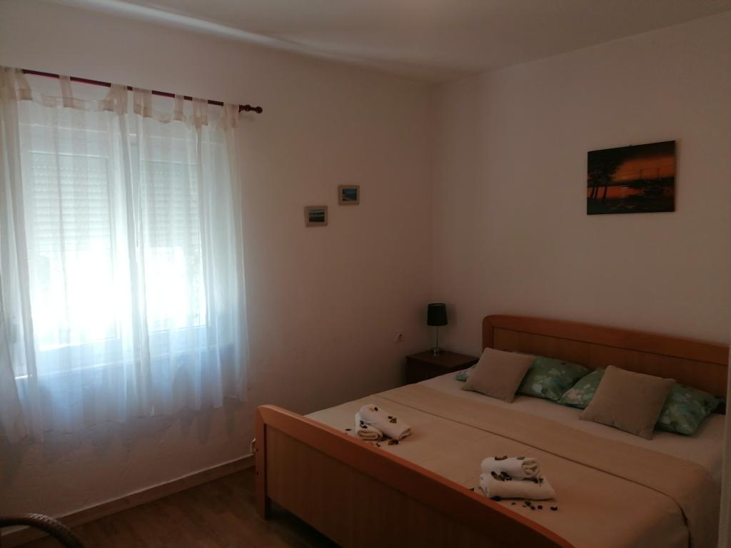 Apartamentul este modern echipat și poate găzdui 6 persoane. Are două dormitoare, un living mare, o bucătărie, o baie și o terasă. Acesta este situat pe primul rând la mare. Stațiunea este înconjurată de pini, oferindu-i umbra naturală și aerul curat. Aproape de apartament (300 de metri) există, de asemenea, un noroi de vindecare, ideal pentru ameliorarea tulburărilor reumatice. Plajele frumoase și accesibile sunt plăcute pentru familiile cu copii mici. În centrul așezării se află un magazin alimentar, brutărie, patiserie, salată de legume și legume de casă și câteva cafenele. Există câteva sporturi la plaja principală. În jur de 5 minute. autoturism, nisip și debarcader (1500m) există un oficiu poștal, pizzerie, restaurante. În apropiere se află raftul pe râul Zrmanja, iar în locul în care se află o mănăstire franciscană de-a lungul căreia se află o pistă cu traulere și un tur al fabricilor vechi. Nu departe de Donji Karina există parcuri naționale și parcuri naturale. Vino și bucurați-vă de frumusețea naturală a frumoasei noastre Karina
