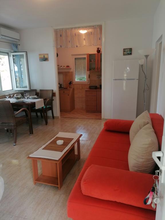 Apartamentul este excelent. Locația este grozavă. Casa are parcare proprie Are un living mare, bucatarie, doua dormitoare, o baie si o terasa mare. Bucătăria este complet utilată. Totul este asa cum este scris in descrierea apartamentului. Terasa are o vedere frumoasa la mare si Velebit. Puteți vedea plaja și pădurea de pini în fața casei. Gazdele sunt prietenoase. Plaja este fantastica, la doar 50 de pasi de apartament. Îl recomandăm dacă doriți să vă bucurați de liniște și liniște. Nu prea aglomerat. Un loc de bucurat. Apa este grozavă pentru înot și există o mulțime de puține adânci, doar pentru copii. Revenim anul viitor!!!