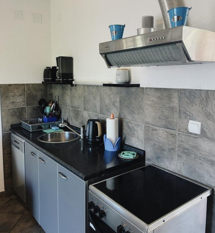 Apartament frumos, frumos mobilat (inclusiv cuptor și mașină de spălat vase), balcon cu vedere superbă și o terasă la umbră! Gazde prietenoase, plaja frumoasa. Îl recomand cu căldură, mai ales pentru vacanța cu un animal de companie, ceea ce este foarte binevenit la Apartments Nina.