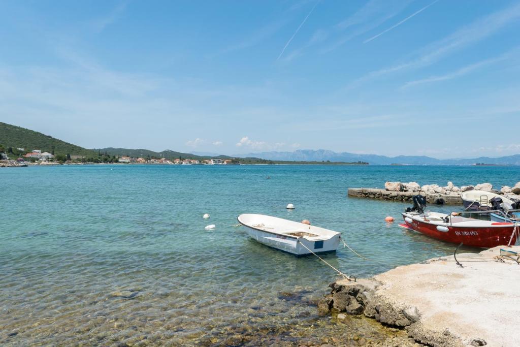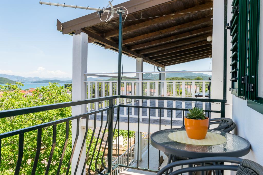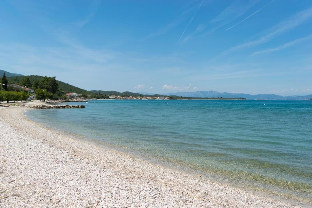 Apartamentul este situat într-un mediu liniștit în satul Drace. Acesta este situat la primul etaj, 60 m2. și 1 minute pe jos de plaja este format din doua dormitoare, living, bucatarie si baie. Apartamentul este dotat cu aer condiționat, Wi-Fi, și are un balcon cu vedere deosebit de frumoasă la mare. Oaspeții pot folosi grătar în fața casei. Loc de parcare pentru masina la umbra (gratuit). Plaja cu pietriș, cu nisip fin, în mare. Distanta de la mare de 60 de metri. Poziția ideală pentru vizitarea peninsula și insulele din jur, precum și sud-croată situri culturale și naturale. Alte beneficii negociabile. .