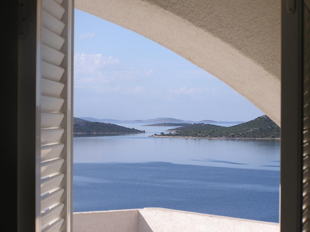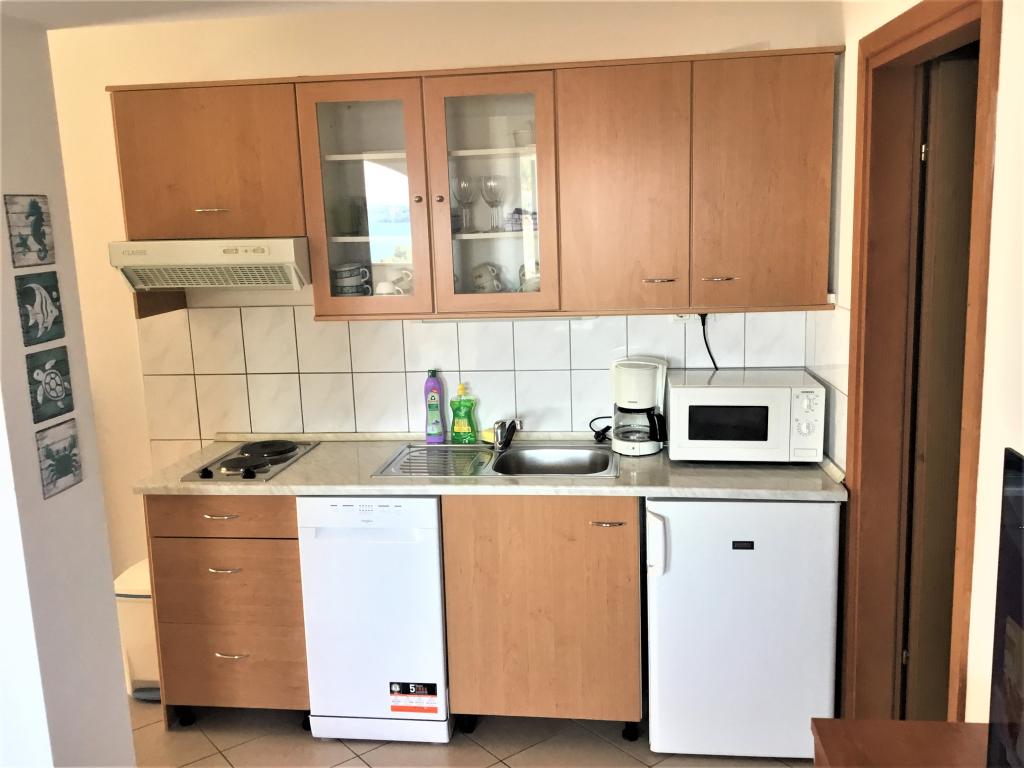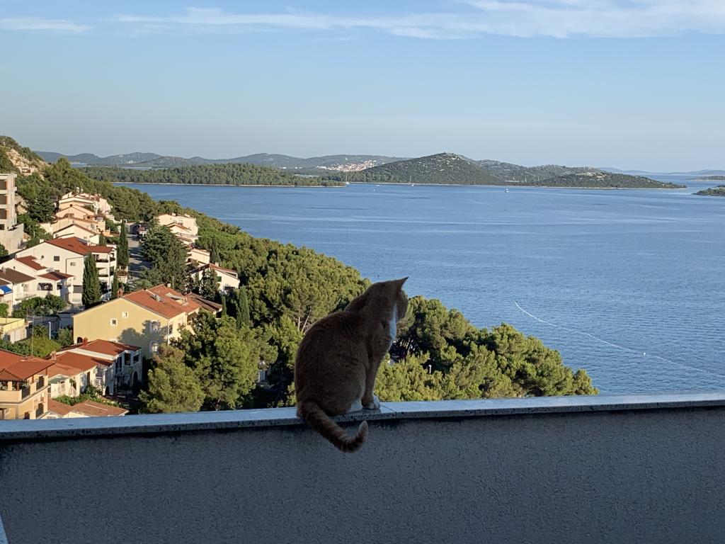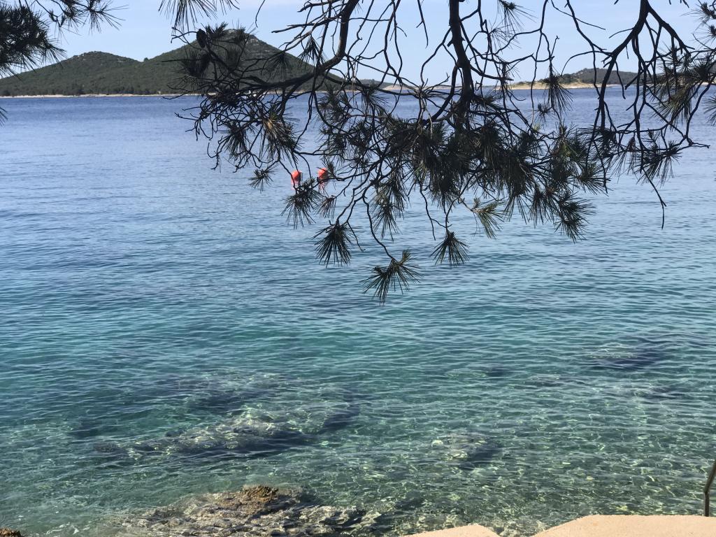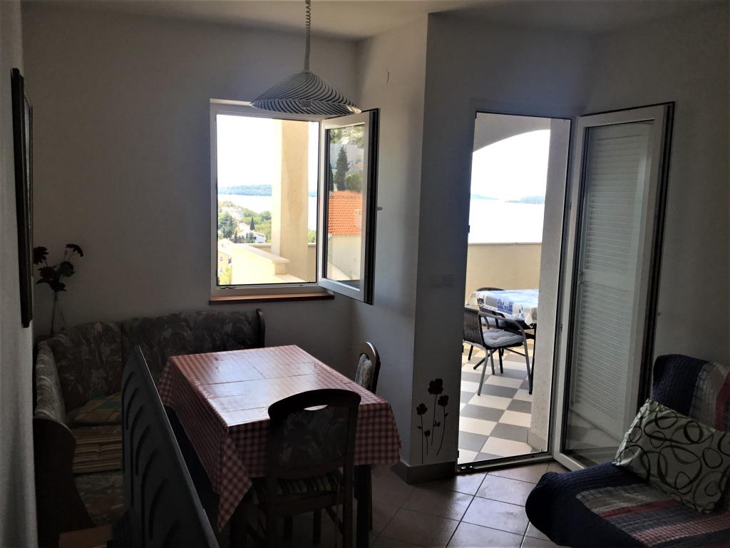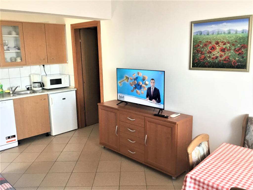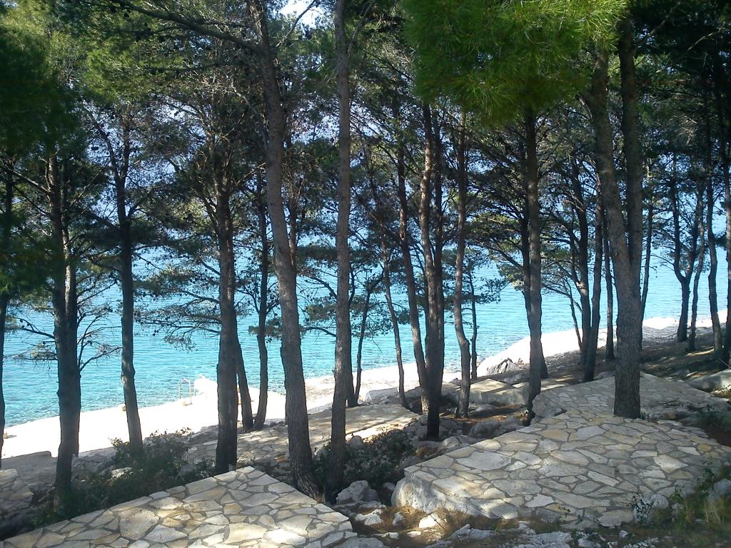 Proprietatea este situată în al treilea rând al satului de weekend Dolaška Draga Bay, parte a orașului Drage, la aproximativ 100 m (în linie dreaptă) de mare și de plajele care se întind de-a lungul satului de weekend până la pădurea densă de pini și promenadă. Datorită altitudinii dominante a proprietății (aproximativ 50 m deasupra nivelului mării), toate camerele apartamentelor și terasele au o vedere panoramică frumoasă asupra satului de weekend în sine, a portului local, a plajelor din jur, a insulelor din apropiere și a orașului Murter și a insulelor Kornati în depărtare. Distanța de la proprietate până la mare (plaje înconjurate de păduri dense de pini și o promenadă) este de aproximativ 300 m folosind drumul de acces prin satul de weekend Dolaška Draga; pe jos, în jurul drumului (aproximativ 10 minute) sau cu mașina (2 minute). La mare se poate ajunge pe jos mai rapid (5 minute) dacă se folosește o porțiune scurtă a drumului de acces și una dintre numeroasele scări din satul de weekend construite special pentru accesul la mare, plajă, promenadă, pădure de pini, port, cafenea etc. Complexul dispune de două apartamente (la etajele 2 și 3), dintre care se închiriază doar apartamentul de la etajul 2, iar gazdele (2-4 persoane) stau în apartamentul de la etajul 3 vara, astfel încât sunt disponibile zilnic și la dispoziția oaspeților, fără a le tulbura liniștea și intimitatea. Oaspeții au la dispoziție 1 loc de parcare pentru o mașină în garajul complexului, iar pe terasa panoramică (80 m2) de deasupra garajului (etajul 1) pot folosi echipamentele corespunzătoare (grătar, masă de grădină cu 4 scaune și 2 șezlonguri) nelimitat.