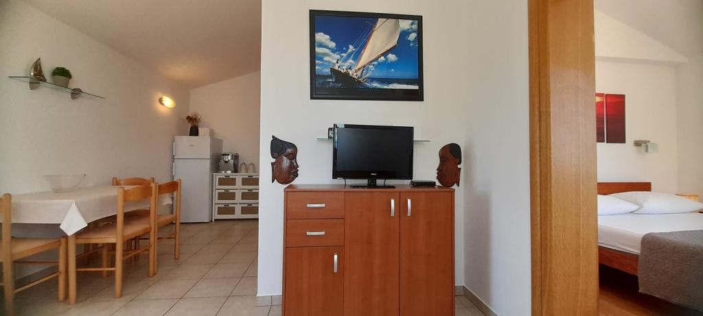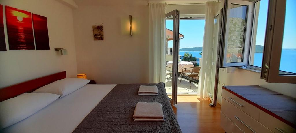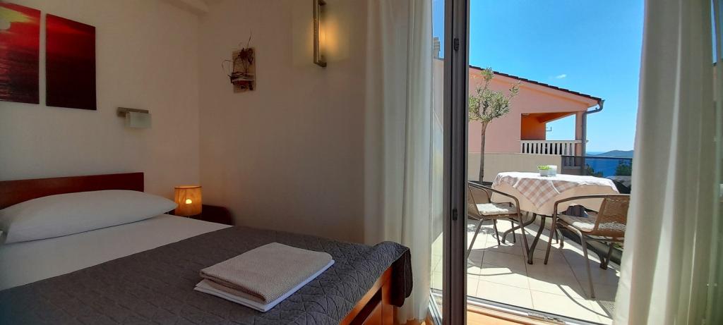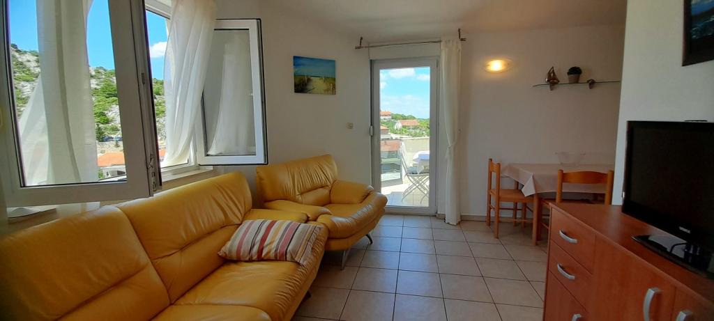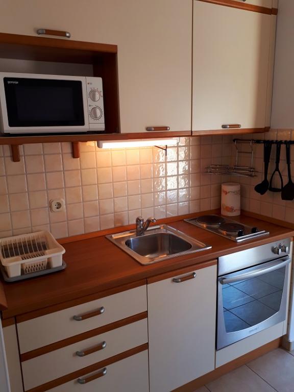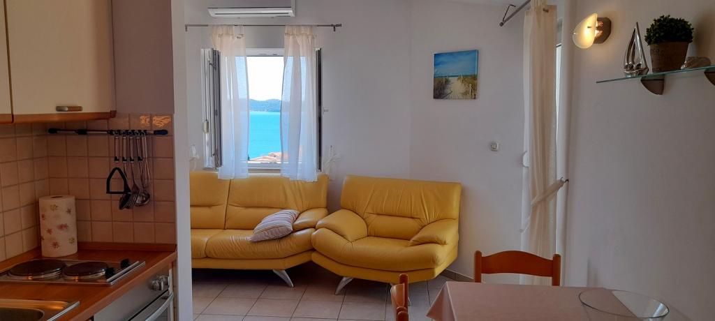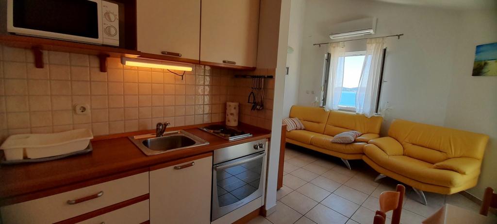Apartament Sea View este situat în orașul Drage, în golful Dolaška draga, unde există o plajă mare cu pietriș și nenumărate plaje mici pavate cu piatră. Oaspeții au la dispoziție și o minunată promenadă „lungo mare”, un parc pentru copii și câteva cafenele confortabile. Apartamentul este situat la etajul trei al unei mici cladiri rezidentiale si ofera o priveliste minunata si unica asupra marii. Se află la 5 minute de mers pe jos de plajă. Apartamentul are doua dormitoare, o baie, o bucatarie cu living si trei balcoane, iar oaspetii au la dispozitie doua aparate de aer conditionat, internet WiFi plat, loc de parcare securizat, masina de spalat, aparat de cafea...