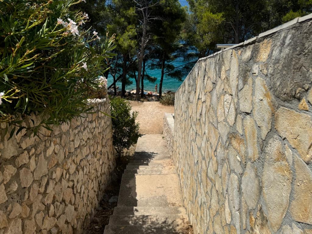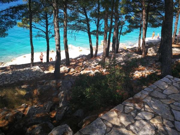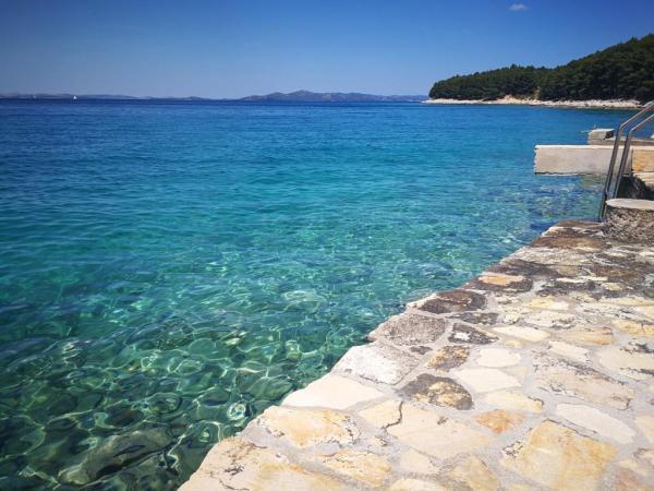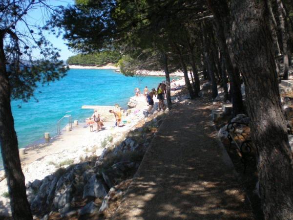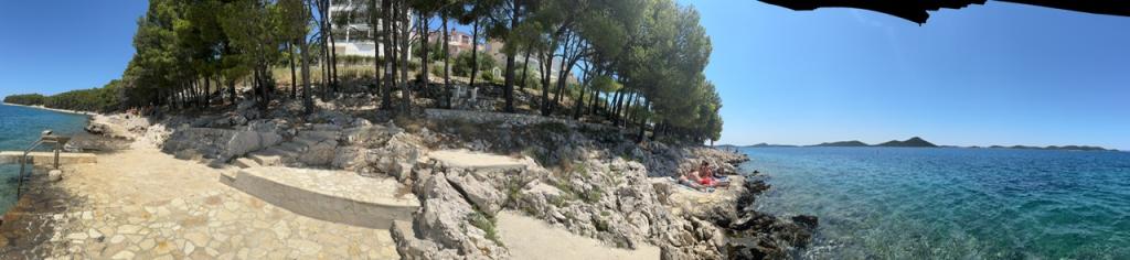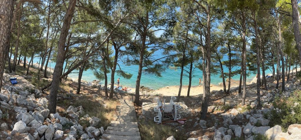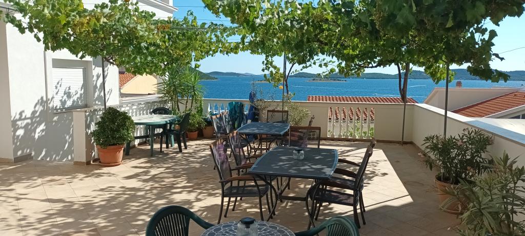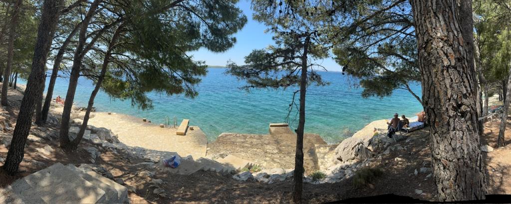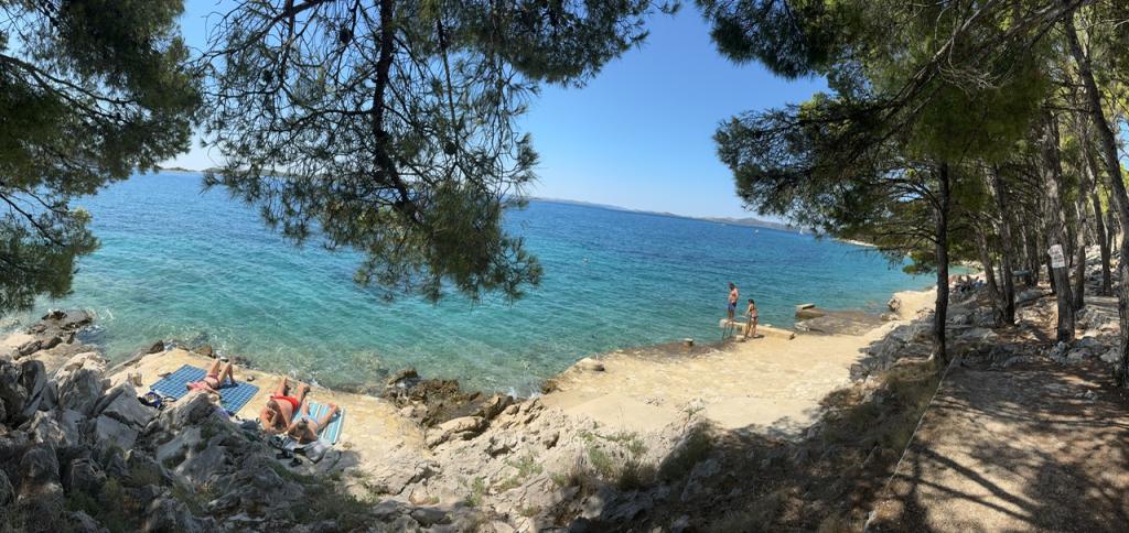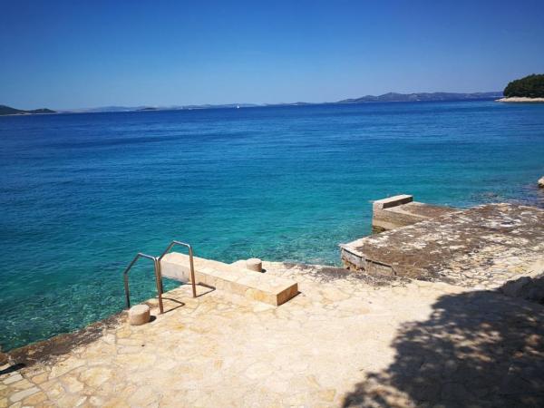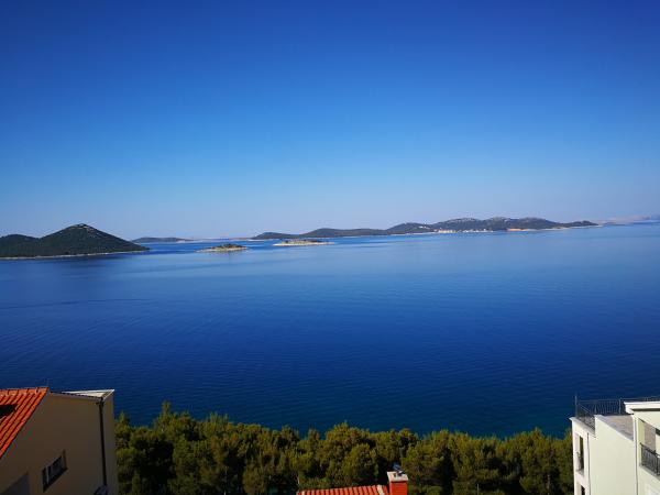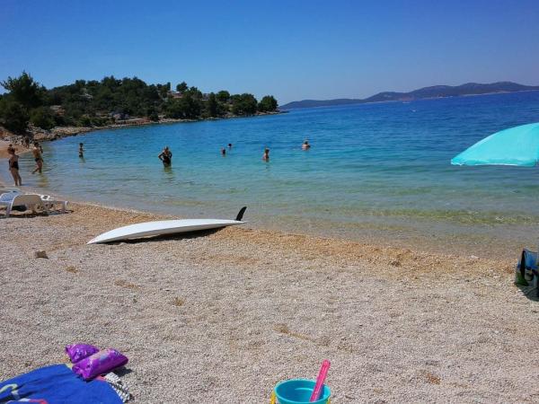 Apartamentele complet utilate și modern echipate sunt situate într-o casă nou construită, în cea mai liniștită parte a golfului, la doar 30 m de mare. O adevărată oază de pace și liniște, cu o mare cristalină. De la casă până la plaja noastră pavată puteți coborî direct pe scări. Plaja se află în imediata vecinătate a unei păduri de pini cu zone de plajă. În golfurile învecinate există două plaje cu pietriș mai mari și multe plaje pavate și stâncoase, mai mici și mai mari. Toate apartamentele au o vedere magnifică la mare (arhipelagul Kornati). Casa are, de asemenea, o terasă comună mare (100 m2) cu grătar de piatră și o vedere minunată la mare. Avem un garaj pentru 4 mașini și 4 locuri de parcare lângă casă. Posibilitatea de a face plimbări în pădurea de pini de-a lungul potecii bine întreținute de lângă mare, iluminată seara. La 15 minute de mers pe jos de magazin și restaurant.