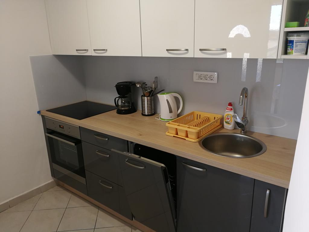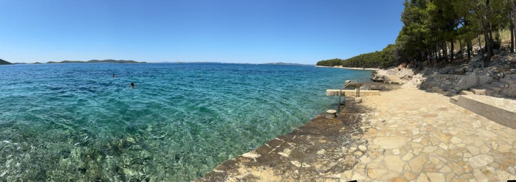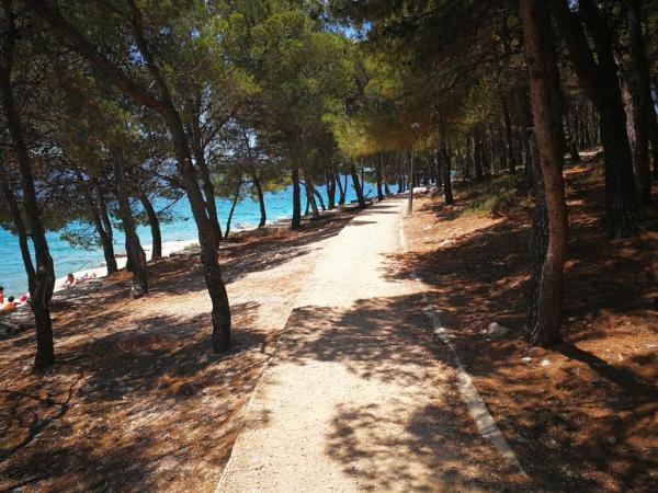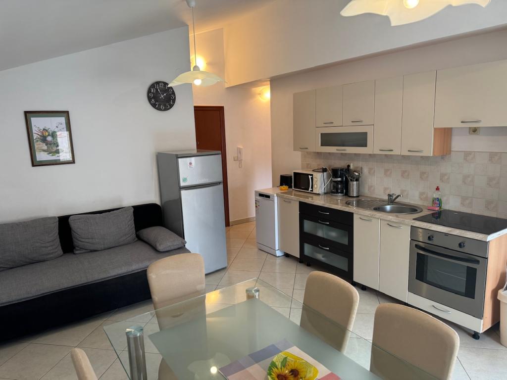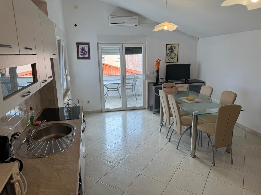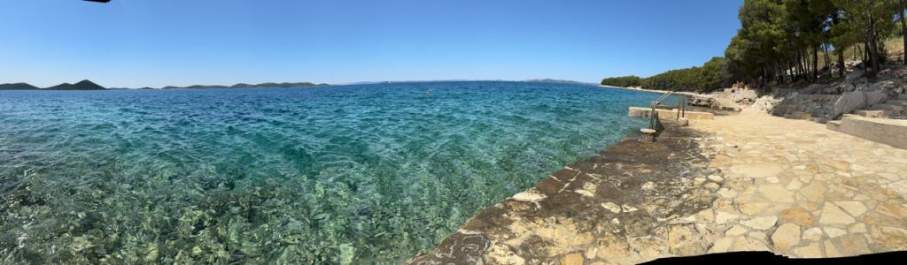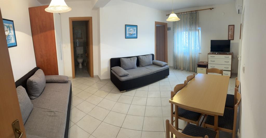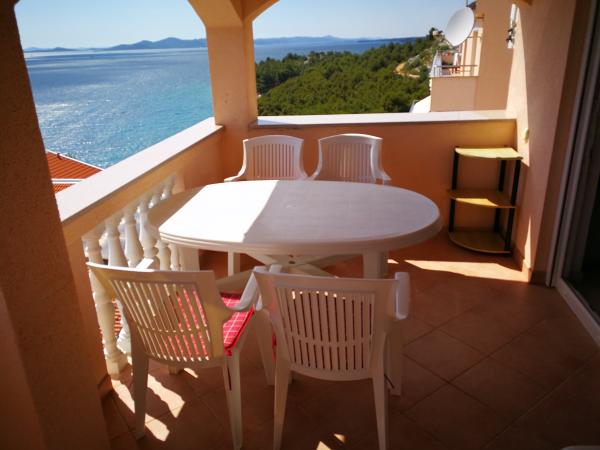 Apartamentele complet utilate și modern echipate sunt situate într-o casă nou construită, în cea mai liniștită parte a golfului, la doar 30 m de mare. O adevărată oază de pace și liniște, cu o mare cristalină. De la casă până la plaja noastră pavată puteți coborî direct pe scări. Plaja se află în imediata vecinătate a unei păduri de pini cu zone de plajă. În golfurile învecinate există două plaje cu pietriș mai mari și multe plaje pavate și stâncoase, mai mici și mai mari. Toate apartamentele au o vedere magnifică la mare (arhipelagul Kornati). Casa are, de asemenea, o terasă comună mare (100 m2) cu grătar de piatră și o vedere minunată la mare. Avem un garaj pentru 4 mașini și 4 locuri de parcare lângă casă. Posibilitatea de a face plimbări în pădurea de pini de-a lungul potecii bine întreținute de lângă mare, iluminată seara. La 15 minute de mers pe jos de magazin și restaurant.