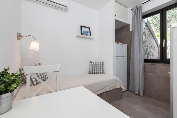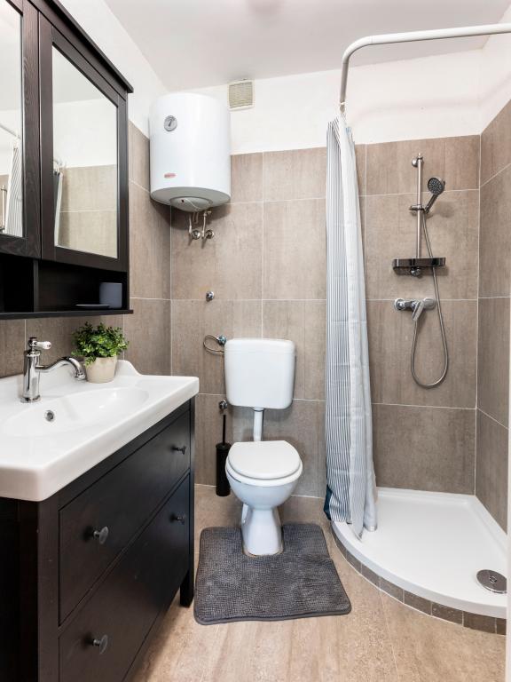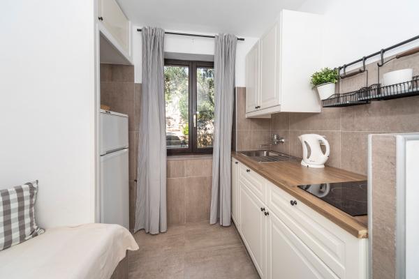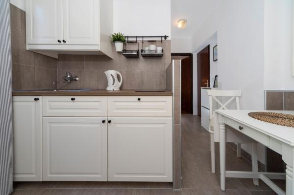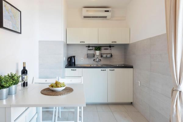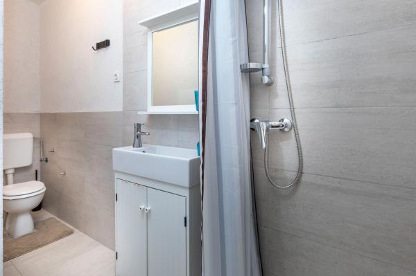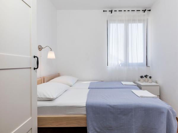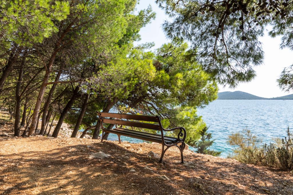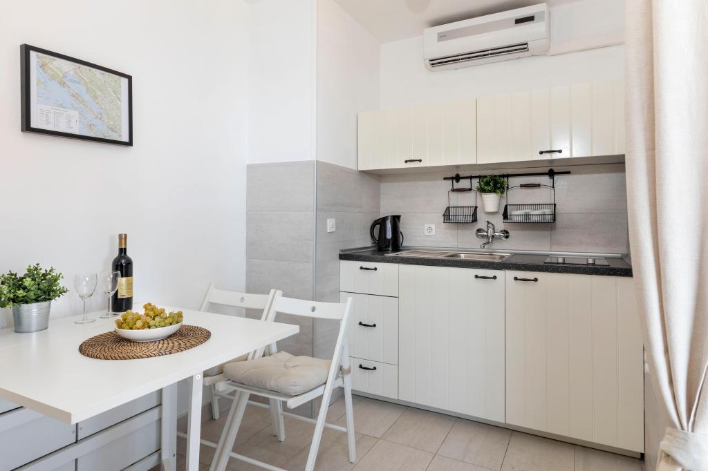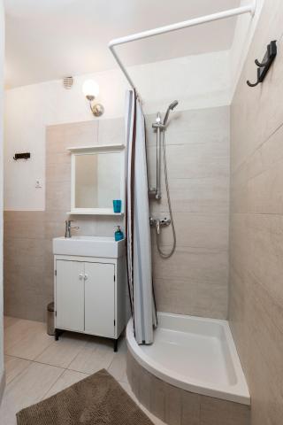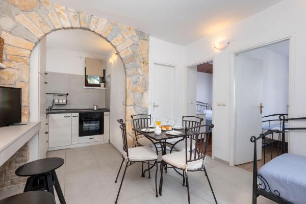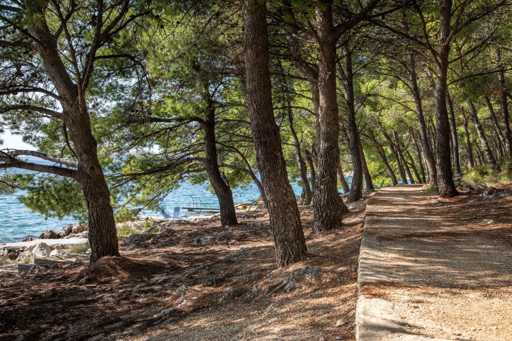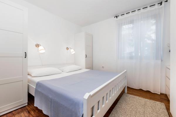 Apartamente complet echipate într-o locație minunată cu vedere la mare într-o casă înconjurată de verdeață. Facilitatea se afla la o distanta de 150 m de mare si plaja, langa care se afla o padure deasa de pini. O promenadă iluminată se întinde prin pădurea de pini de-a lungul mării. Fiecare apartament are bucatarie si baie proprie si 1-2 dormitoare, in functie de apartament. Bucataria are toate electrocasnicele si vasele necesare. Apartamentul are cuptor sau cuptor cu microunde (in functie de apartament). Camerele au paturi confortabile, lenjerie de pat și prosoape sunt furnizate în baie. Apartamentul A4 are o terasa spatioasa cu vedere frumoasa la mare iar terasa este parte integranta a apartamentului. Apartamentul A4+1 are o terasa privata acoperita langa apartament, inconjurata de verdeata. Garsoniera are propria sa terasă privată lângă apartament, separată de pasaj, cu o vedere frumoasă la mare Planul fiecărei unități de cazare este atașat la poze, astfel încât să puteți vedea dimensiunea și amenajarea camerelor . Fiecare apartament are propriul loc de parcare.