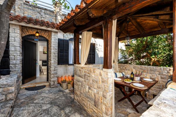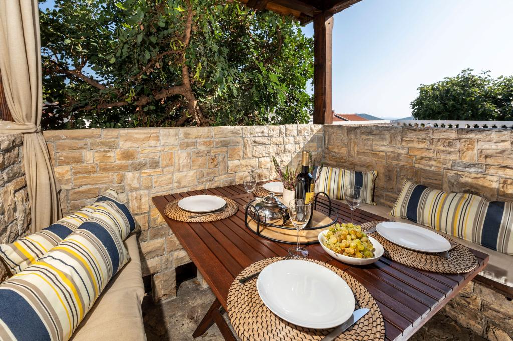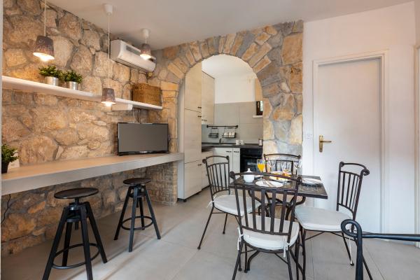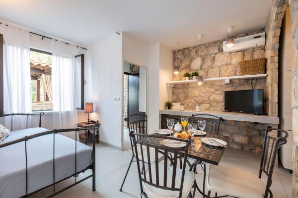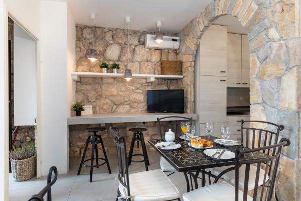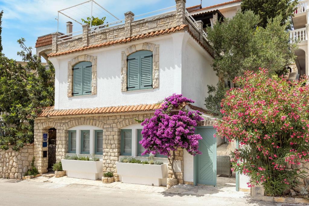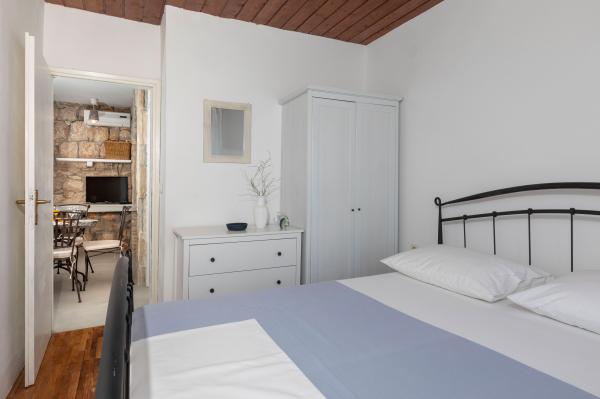Casa în sine este fantastică. Piatra inconjurata de masline, dafin, smochine si flori. Are un colt cu gratar, in timp ce pana si puii se ascund in fundul casei. Apartamentul are o priveliste minunata si tot ce ai nevoie pentru o vacanta placuta. Gazdă prietenoasă. Cel mai rapid mod de a ajunge la plajă este prin scări. Două sau trei minute și ești pe plajă. Este puțin mai în sus. Întotdeauna există un colț la umbră pe plajă. În apropiere se află o brutărie și o mică piață. Ne-am distrat de minune în vacanță.