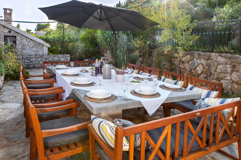 După aranjare, folosirea terasei mari din spatele casei și grătar. Băutura de bun venit este inclusă în preț. Pe plajă există 2 unități de catering. Aproape de parcul natural al Lacului Vrana cu conținut însoțitor.