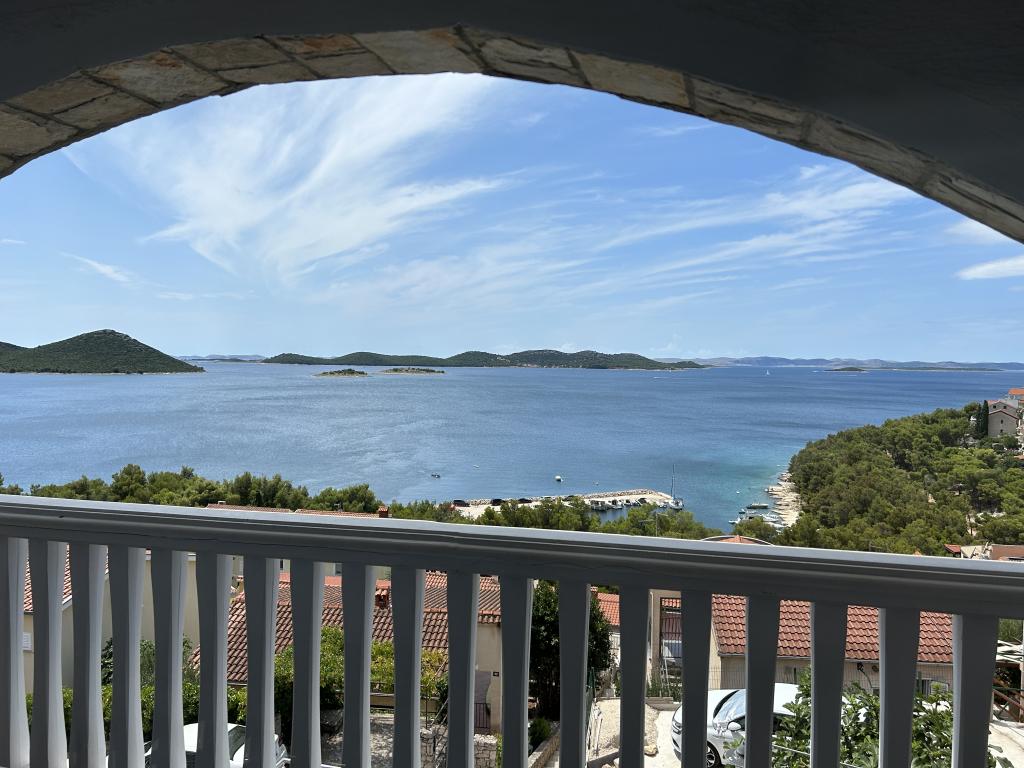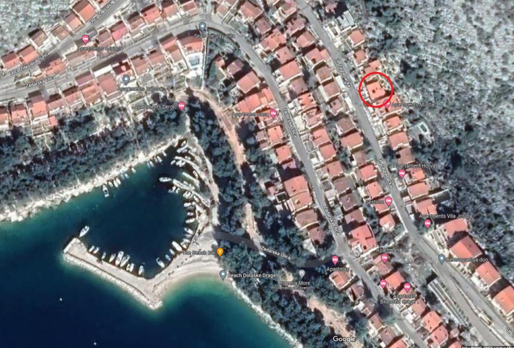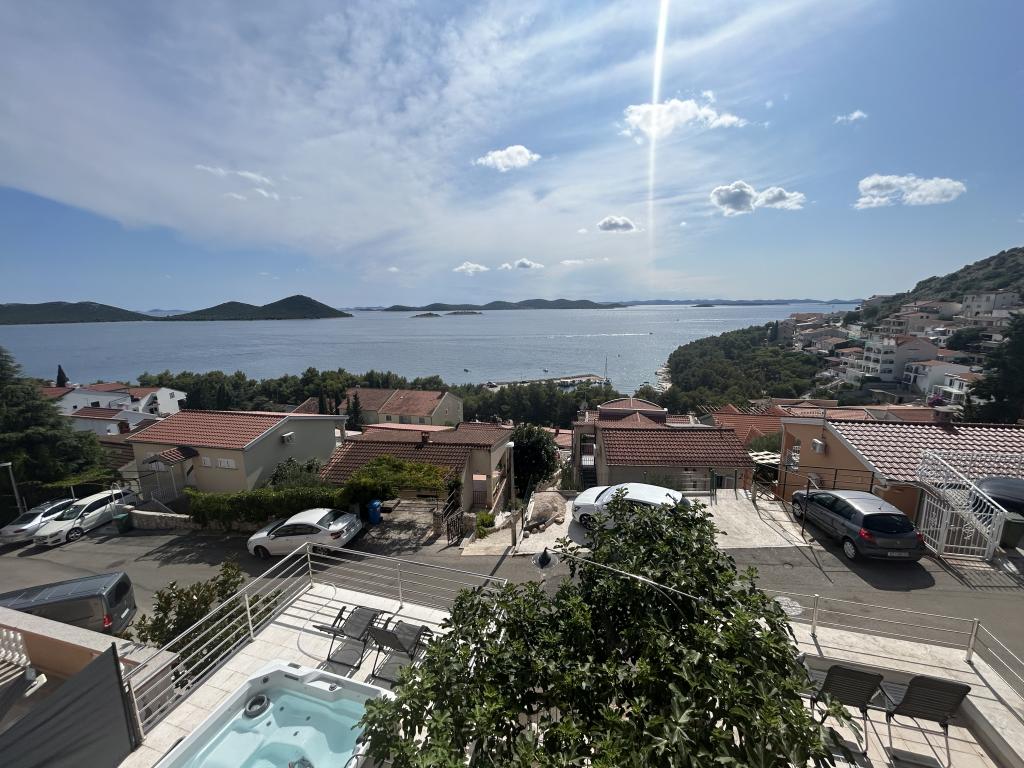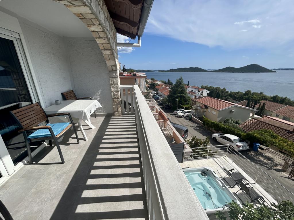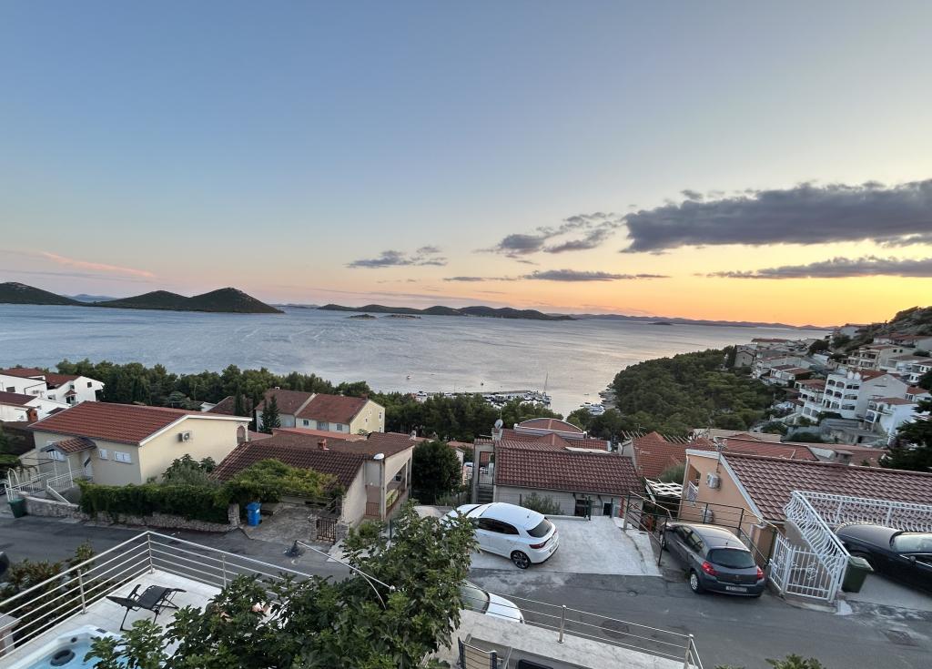 Apartament cu vedere frumoasă la mare și la insulele Kornati. În spatele apartamentului se află o terasă cu o grădină amenajată și un grătar comun. Este la 3 minute de mers pe jos de plajă. De-a lungul coastei există o pădure deasă de pini cu o plajă de piatră și pietriș (pentru copii). Lângă plajă există și un bar pe plajă și un restaurant-pizzerie și o brutărie. Magazinul este la doar 300 de metri, la 5 minute de mers pe jos. Parcul Natural Lacul Vrana este situat la 1500 m.