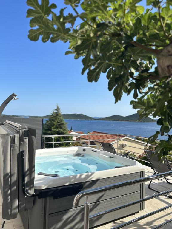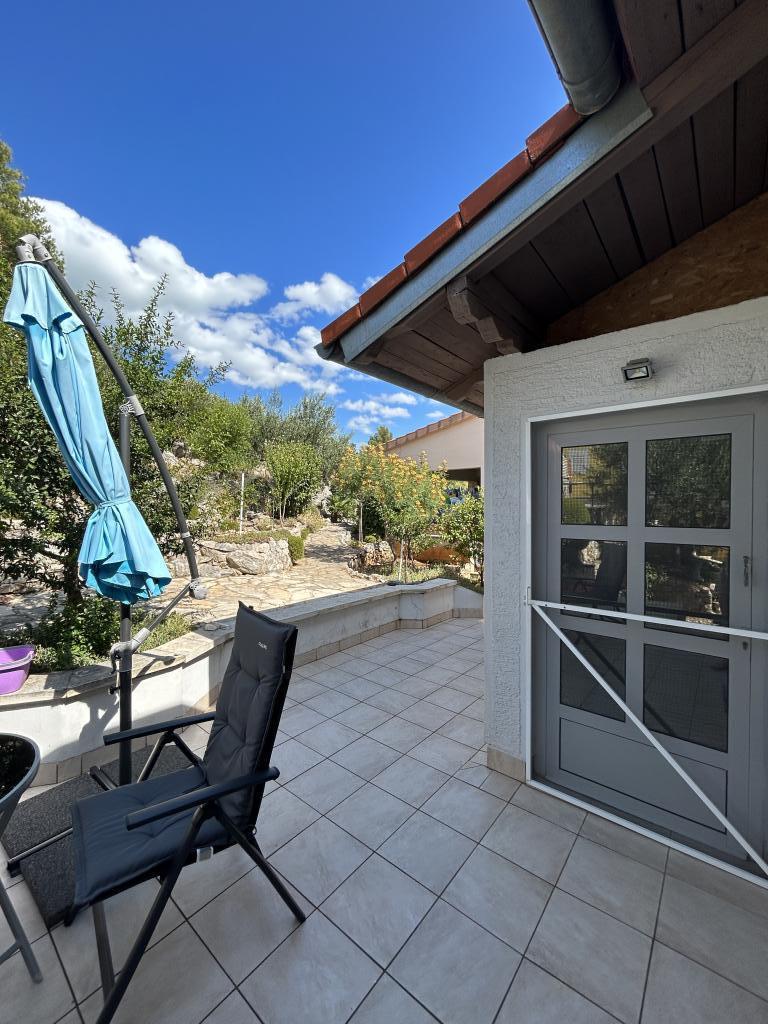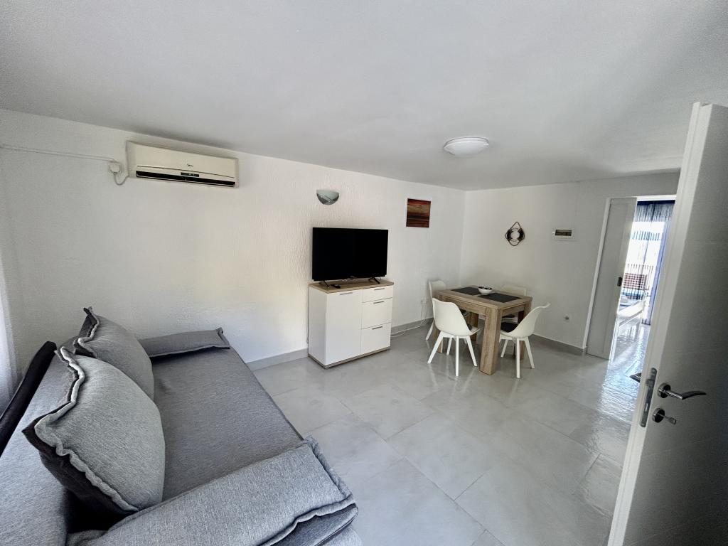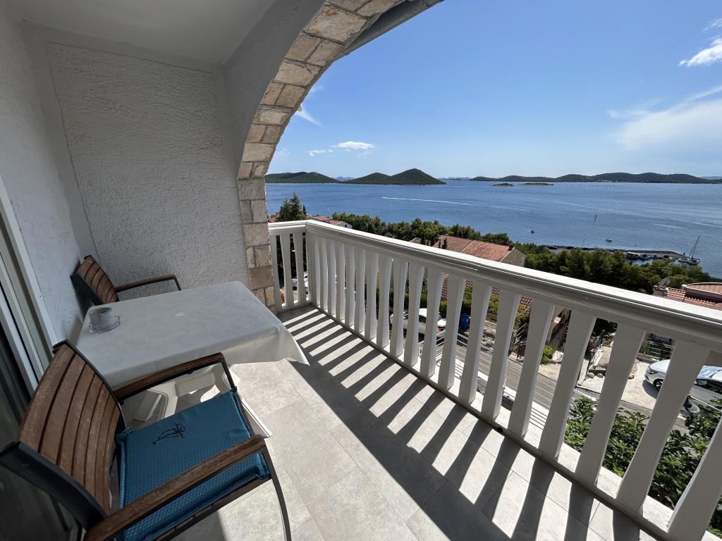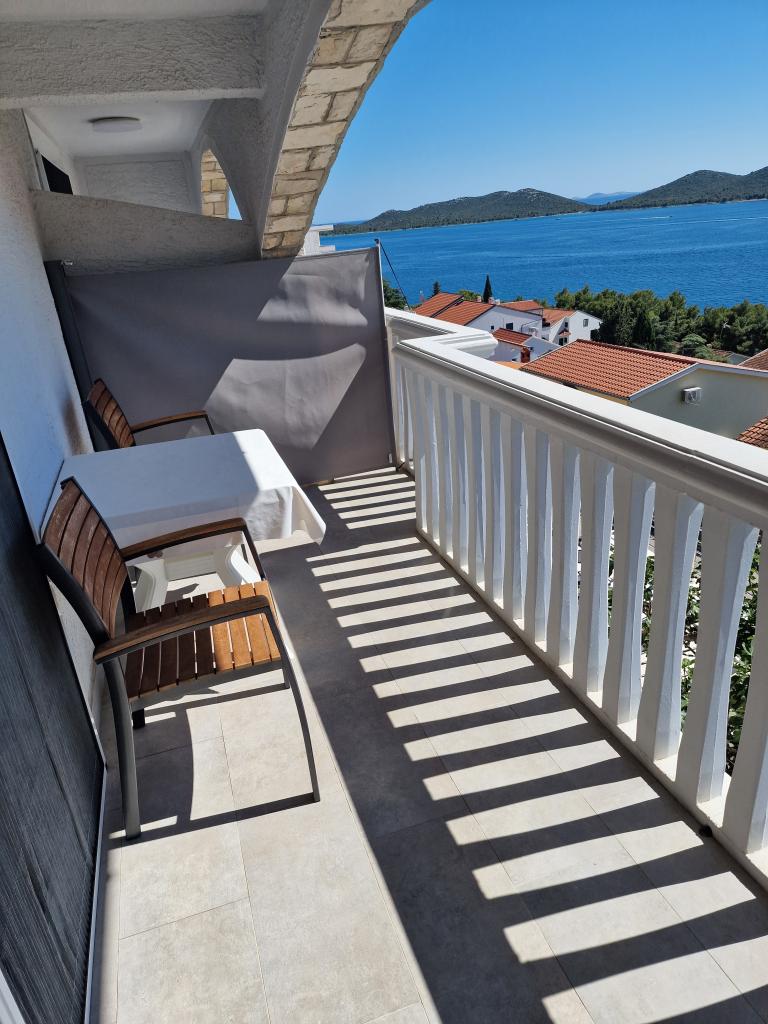 Apartament cu vedere frumoasă la mare și la insulele Kornati. În spatele apartamentului se află o terasă cu o grădină amenajată și un grătar comun. Este la 3 minute de mers pe jos de plajă. De-a lungul coastei există o pădure deasă de pini cu o plajă de piatră și pietriș (pentru copii). Lângă plajă există și un bar pe plajă și un restaurant-pizzerie și o brutărie. Magazinul este la doar 300 de metri, la 5 minute de mers pe jos. Parcul Natural Lacul Vrana este situat la 1500 m.