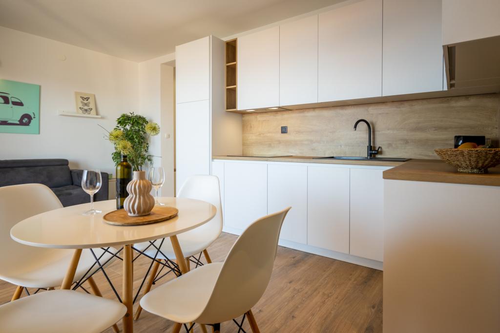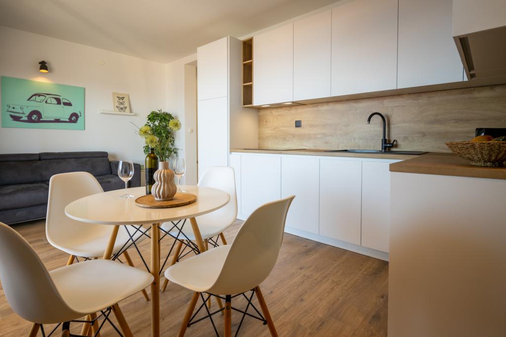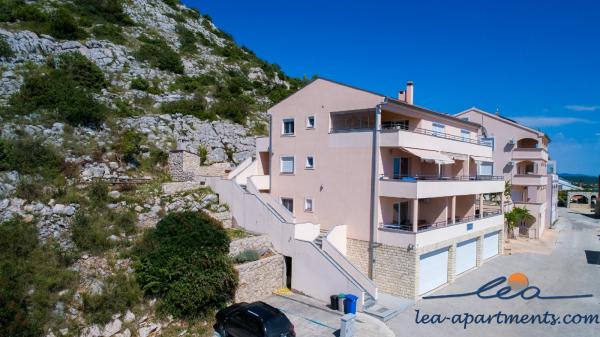 Apartamentele Lea sunt un loc ideal pentru o vacanță de familie, în primul rând, dar și pentru oricine caută o vacanță activă și o vacanță distractivă. APARTAMENTE LEA: 4 x 2+2 apartamente si 1 x 4+2 apartament. Apartamentele sunt la aproximativ 50 de metri de mare. Fiecare apartament are acces la terase, vedere la mare si toate echipamentele necesare pentru un sejur placut pe tot parcursul zilei. Apartamentele au aer conditionat, TV prin satelit, conexiune Wi-Fi gratuita (Internet optic super rapid), gratar si garaj propriu! Apartamentele sunt clasificate cu 4*