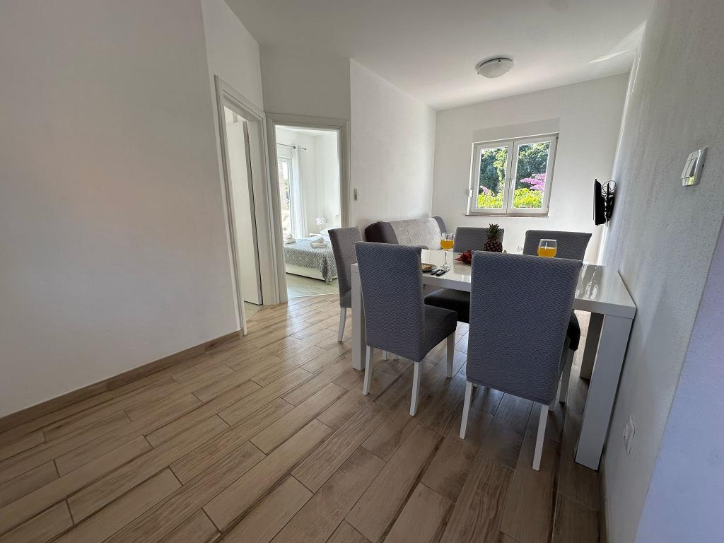 Bine ați venit la Apartamentele Majna – alegerea perfectă pentru o vacanță relaxantă și plăcută în Draga. Apartamentele noastre sunt recent decorate, modern echipate și adaptate pentru a oferi oaspeților confort maxim. Fiecare apartament are propriul aer condiționat, care asigură o ședere plăcută pe tot parcursul verii, indiferent de căldură. O caracteristică specială a unității noastre este o tavernă spațioasă, cu un bar mare și un șemineu (grătar), disponibil tuturor oaspeților. Este un loc ideal pentru socializare, întâlniri de seară, pregătirea mâncării și crearea unei atmosfere relaxante și familiare. Apartamentele Majna oferă combinația perfectă de intimitate și plăcere împărtășită – fie că doriți o vacanță liniștită sau socializare cu familia și prietenii. Veniți și vedeți singuri de ce oaspeții noștri adoră să revină.
