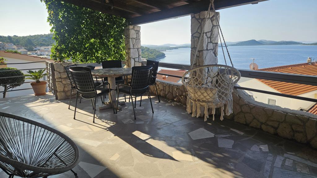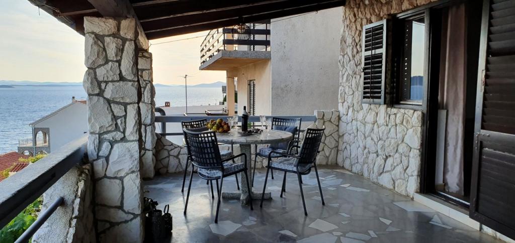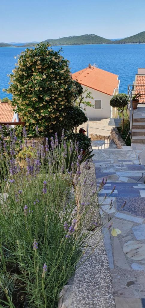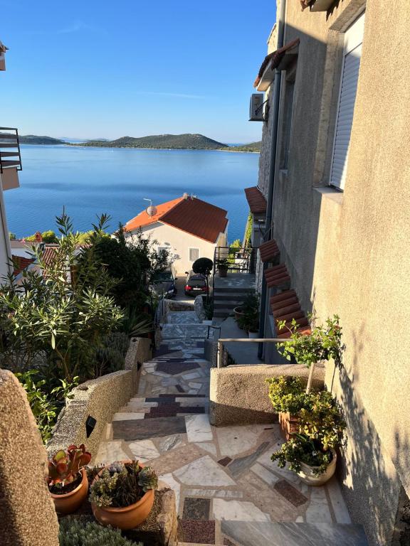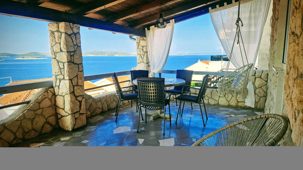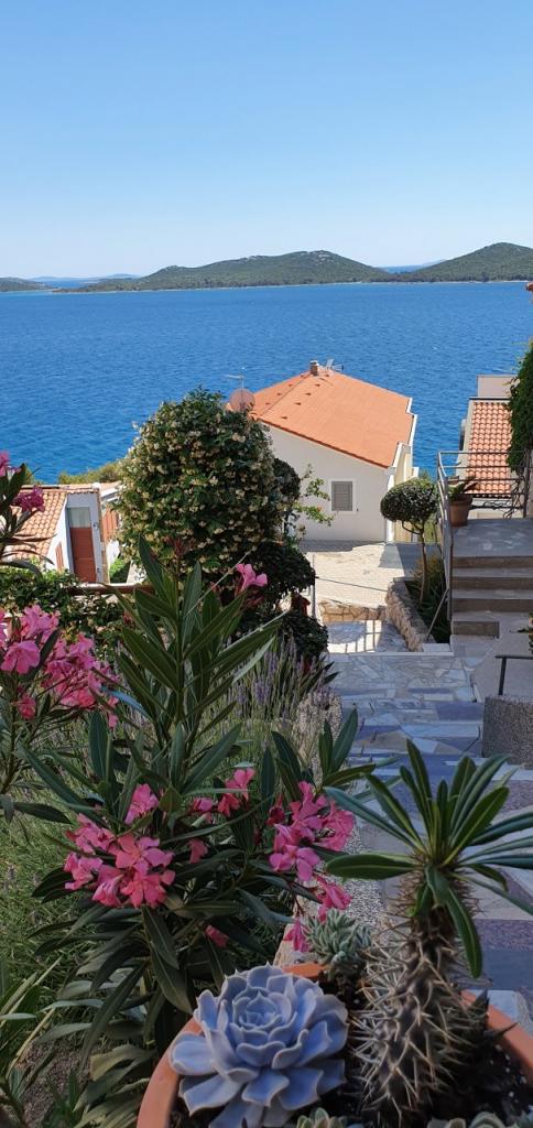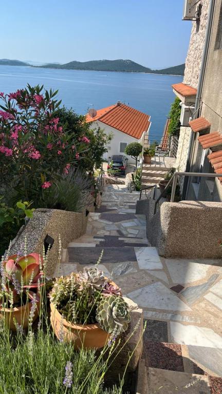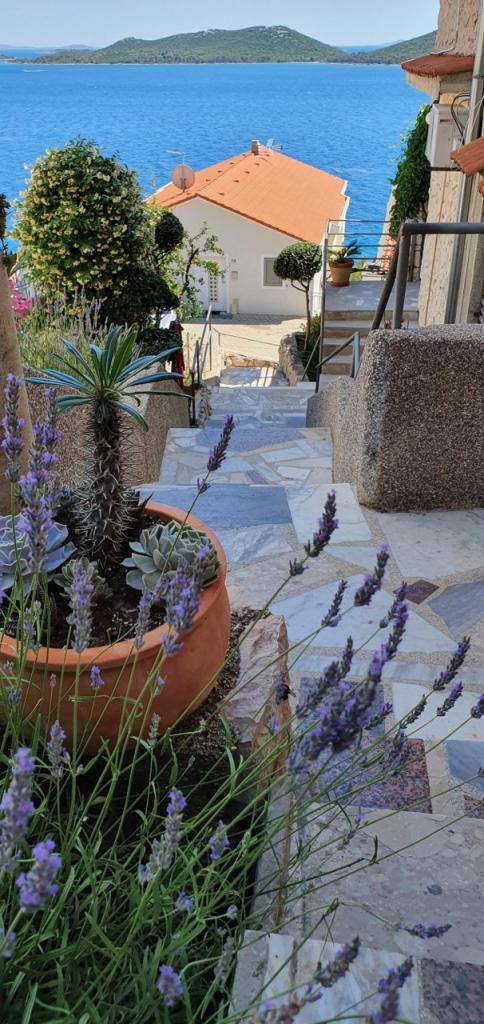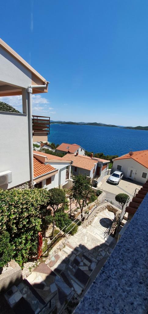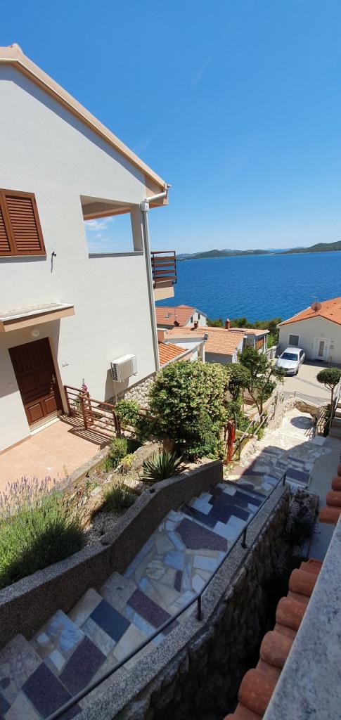 Apartamente complet echipate modern, într-o zonă liniștită, cu vedere frumoasă la mare, care se întinde până la Kornati. Apartamentele sunt situate în al doilea rând la mare, așa că trebuie doar să cobori scările spre mare, unde există plaje pavate, mare limpede și umbră frumoasă și miros de pini. Iar în imediata apropiere se află o plajă cu pietriș, care este un adevărat paradis pentru copii. Toate apartamentele noastre au parcare securizată, iar oaspeții pot folosi și grătarul comun. Restaurantele și cafenelele de pe plajă sunt la 5 minute. , iar cel mai apropiat magazin este la 10 minute de mers pe jos.