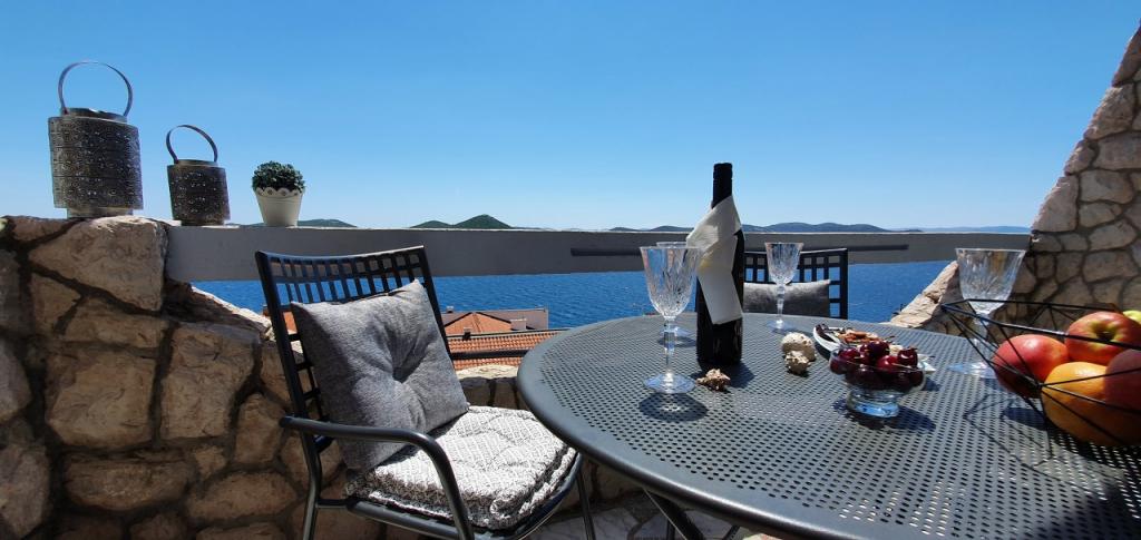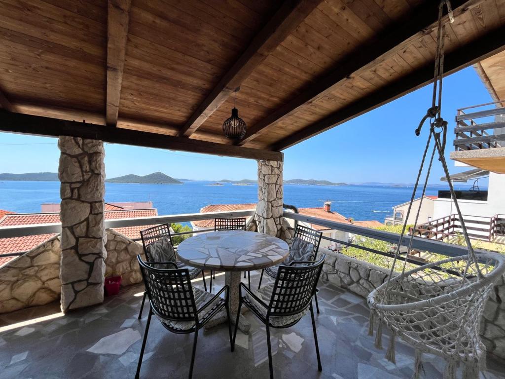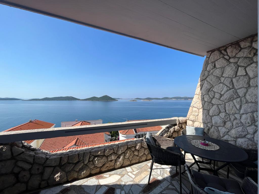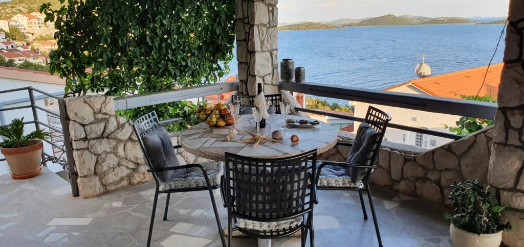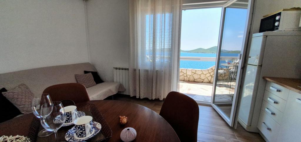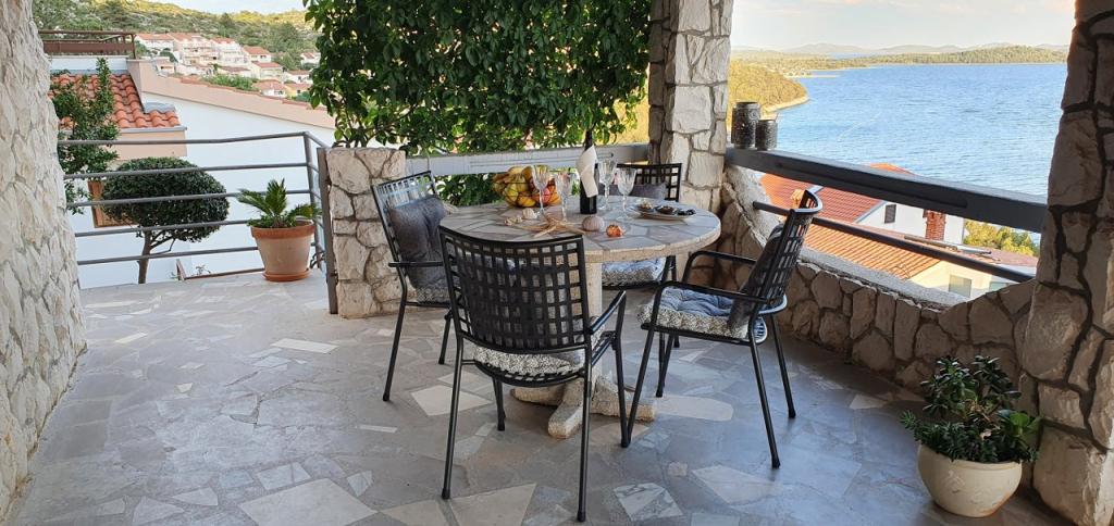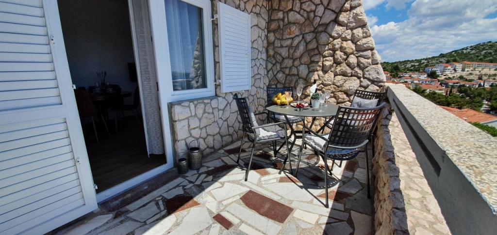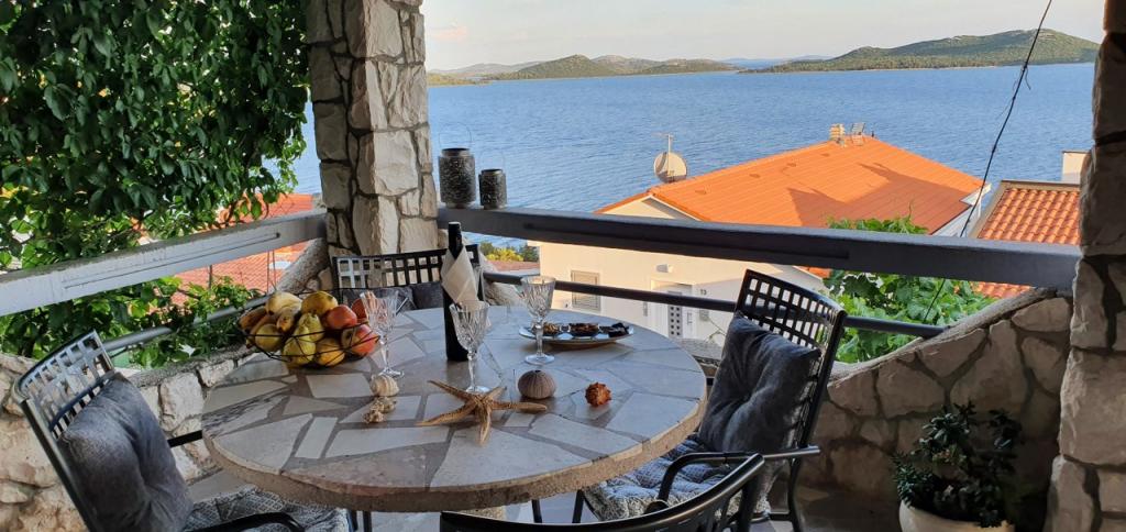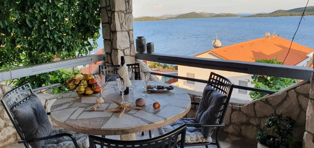 Apartamente complet echipate modern, într-o zonă liniștită, cu vedere frumoasă la mare, care se întinde până la Kornati. Apartamentele sunt situate în al doilea rând la mare, așa că trebuie doar să cobori scările spre mare, unde există plaje pavate, mare limpede și umbră frumoasă și miros de pini. Iar în imediata apropiere se află o plajă cu pietriș, care este un adevărat paradis pentru copii. Toate apartamentele noastre au parcare securizată, iar oaspeții pot folosi și grătarul comun. Restaurantele și cafenelele de pe plajă sunt la 5 minute. , iar cel mai apropiat magazin este la 10 minute de mers pe jos.