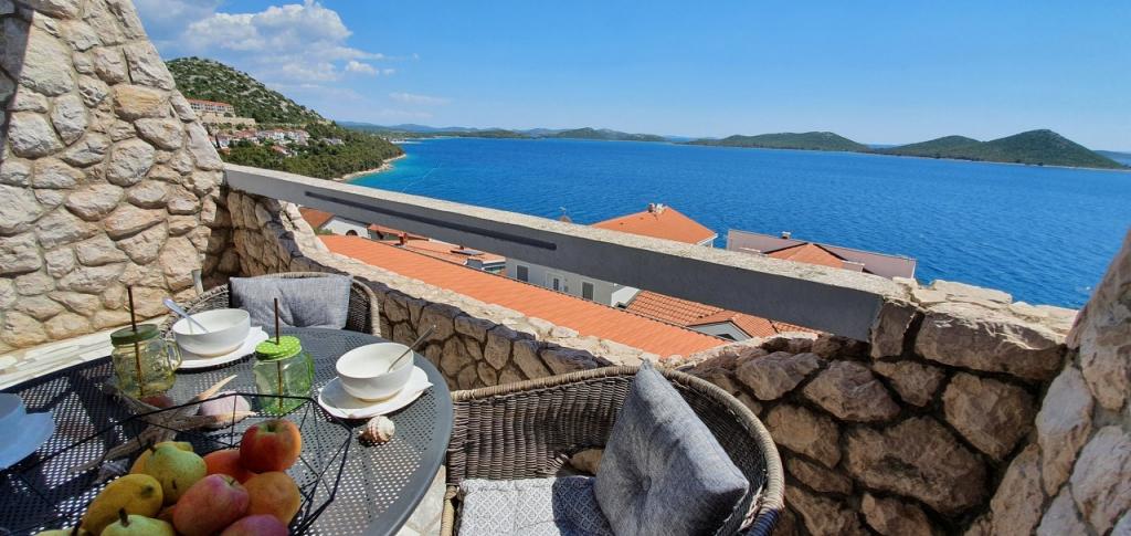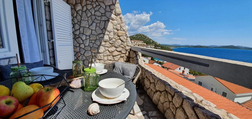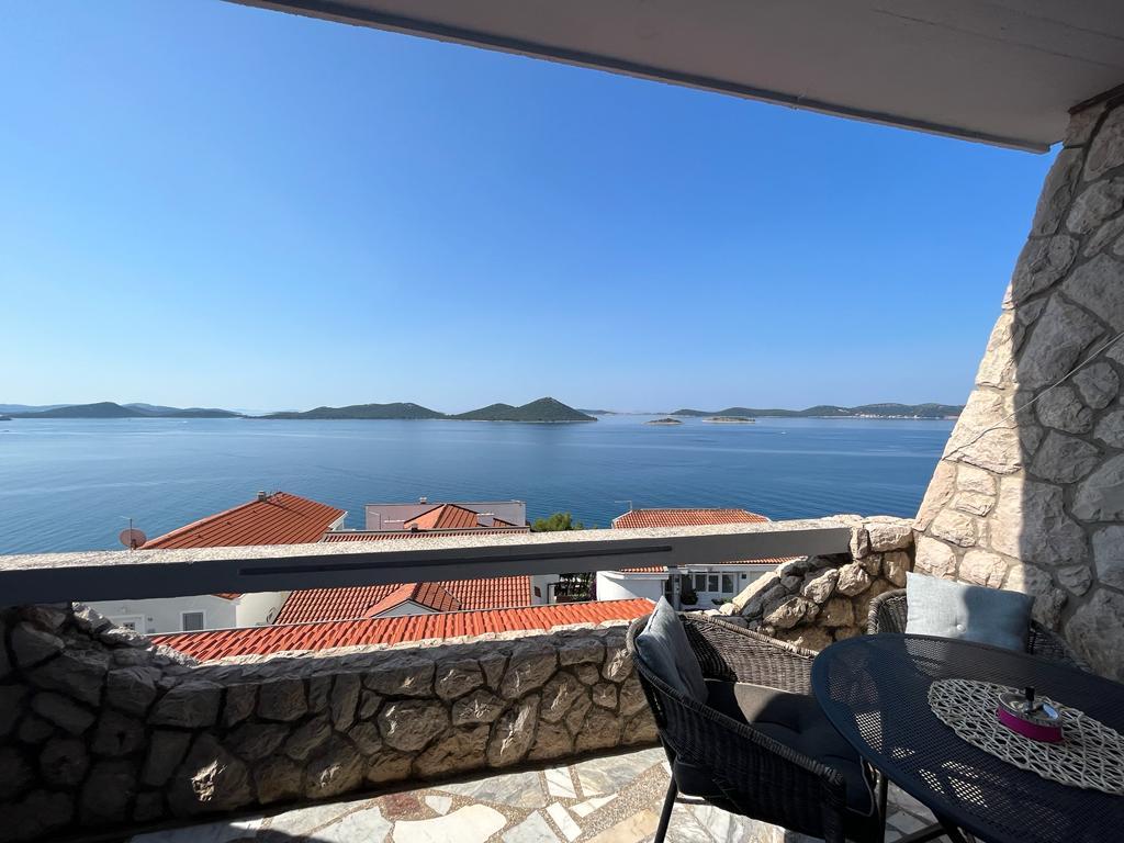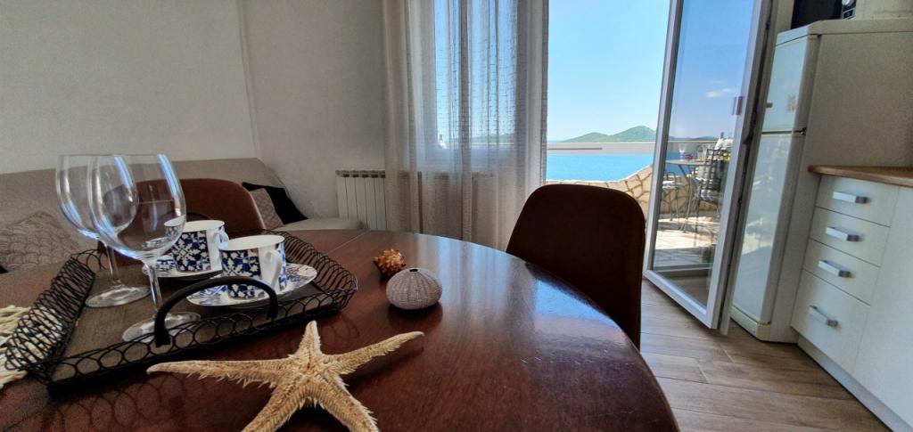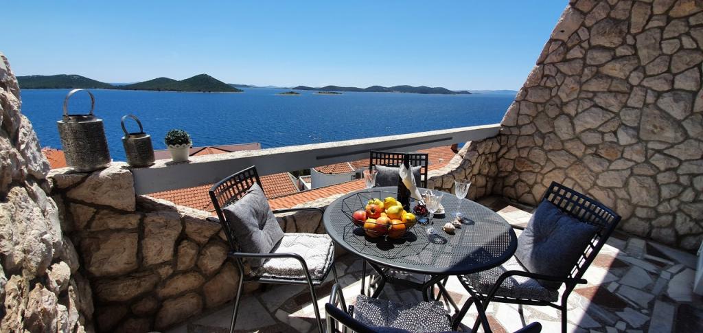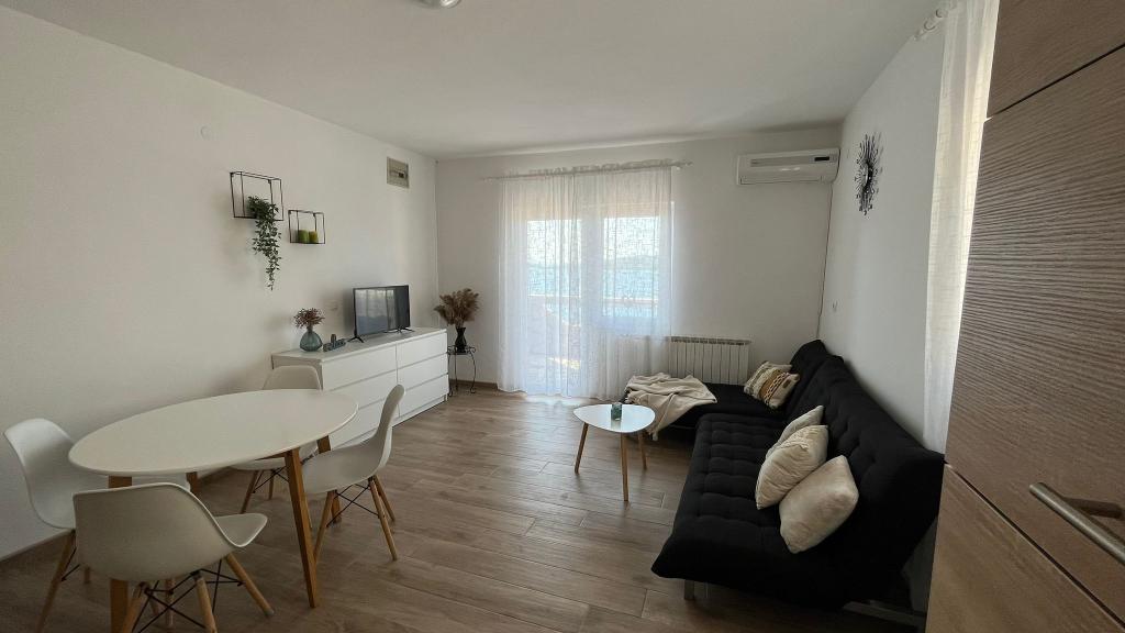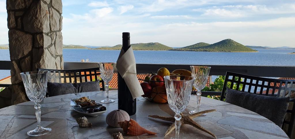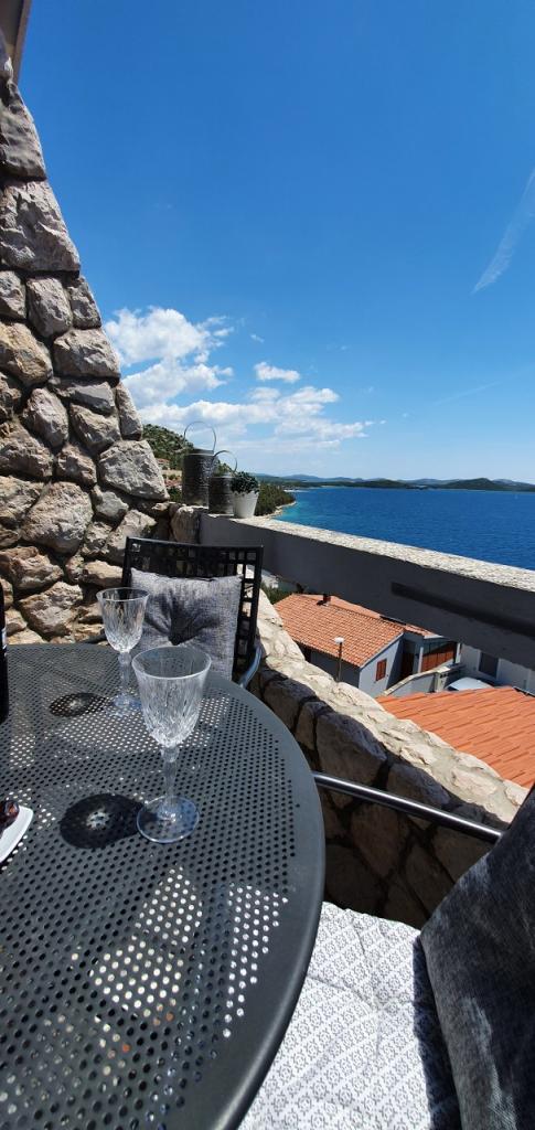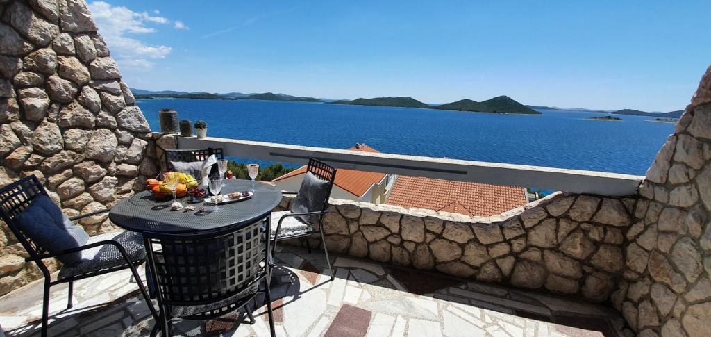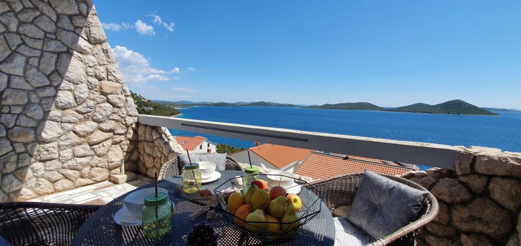 Apartamente complet echipate modern, într-o zonă liniștită, cu vedere frumoasă la mare, care se întinde până la Kornati. Apartamentele sunt situate în al doilea rând la mare, așa că trebuie doar să cobori scările spre mare, unde există plaje pavate, mare limpede și umbră frumoasă și miros de pini. Iar în imediata apropiere se află o plajă cu pietriș, care este un adevărat paradis pentru copii. Toate apartamentele noastre au parcare securizată, iar oaspeții pot folosi și grătarul comun. Restaurantele și cafenelele de pe plajă sunt la 5 minute. , iar cel mai apropiat magazin este la 10 minute de mers pe jos.