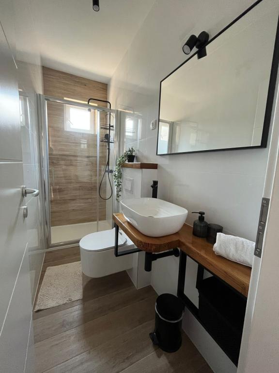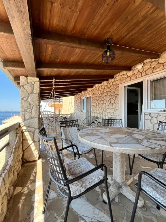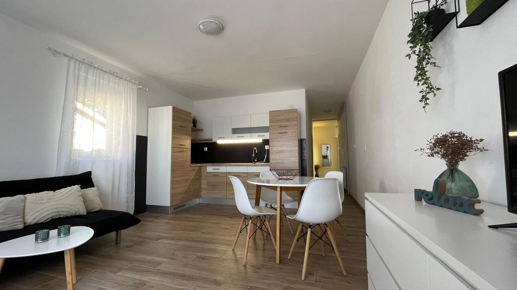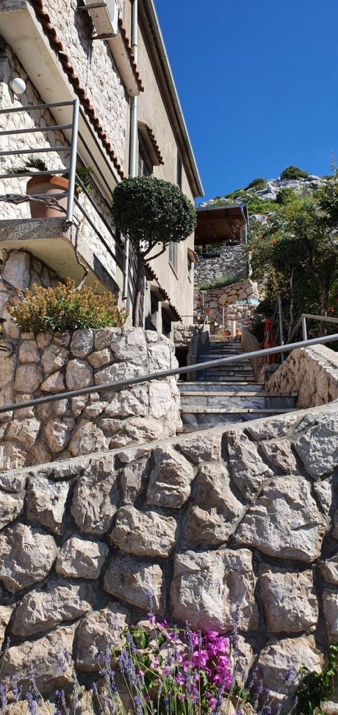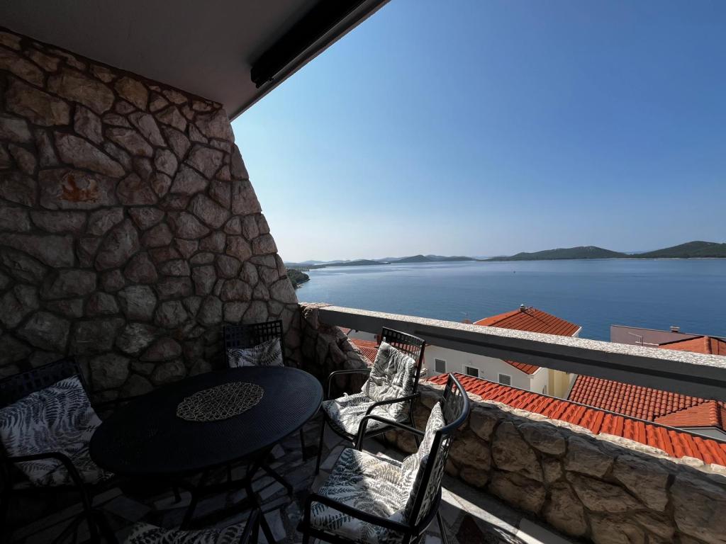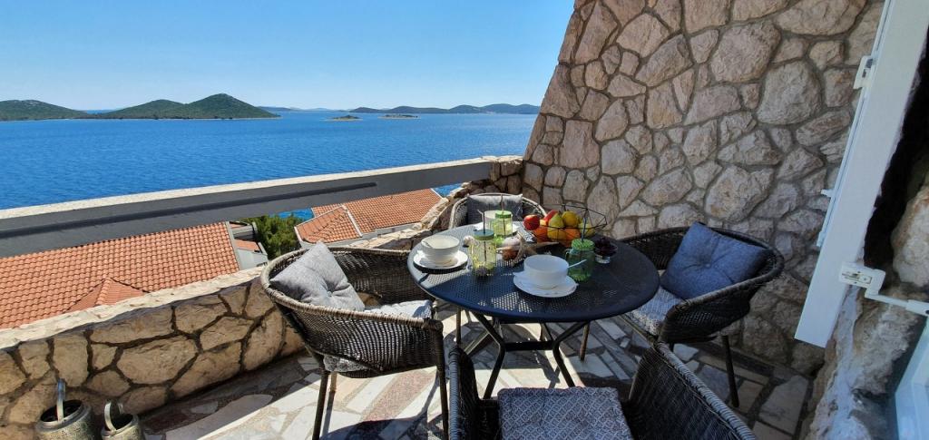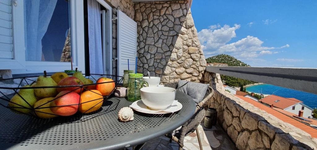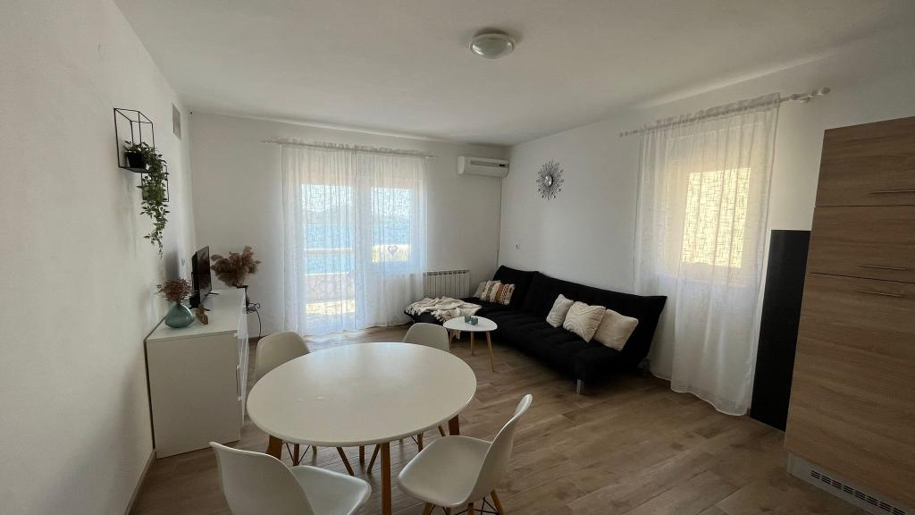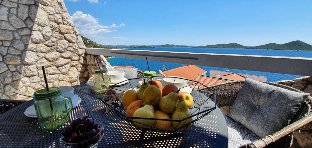 Apartamente complet echipate modern, într-o zonă liniștită, cu vedere frumoasă la mare, care se întinde până la Kornati. Apartamentele sunt situate în al doilea rând la mare, așa că trebuie doar să cobori scările spre mare, unde există plaje pavate, mare limpede și umbră frumoasă și miros de pini. Iar în imediata apropiere se află o plajă cu pietriș, care este un adevărat paradis pentru copii. Toate apartamentele noastre au parcare securizată, iar oaspeții pot folosi și grătarul comun. Restaurantele și cafenelele de pe plajă sunt la 5 minute. , iar cel mai apropiat magazin este la 10 minute de mers pe jos.
