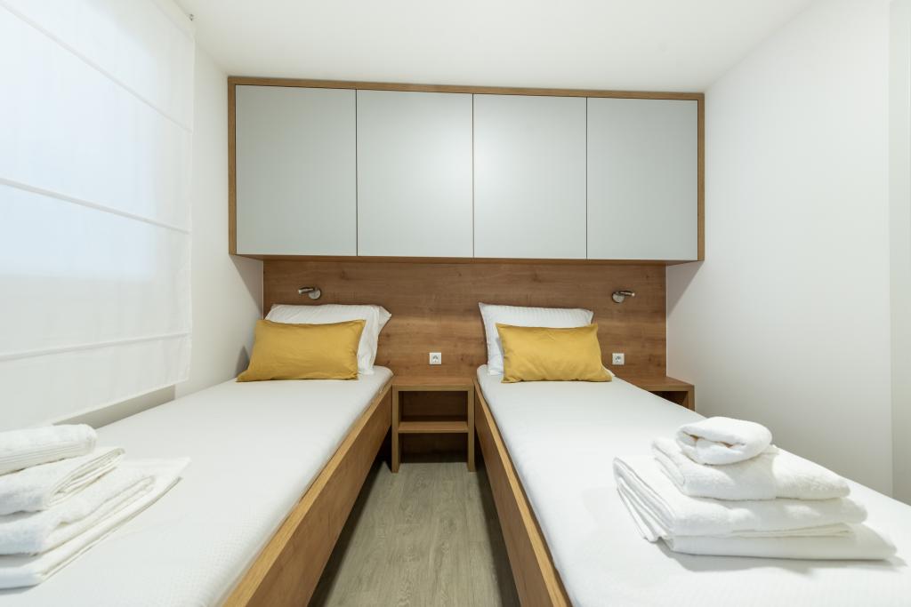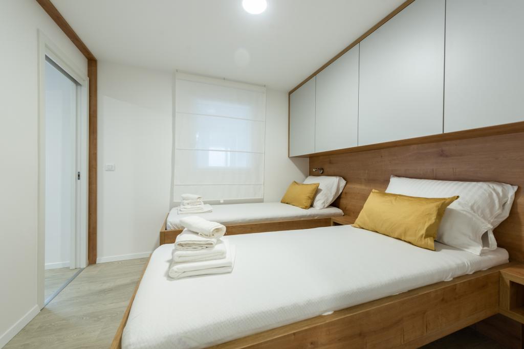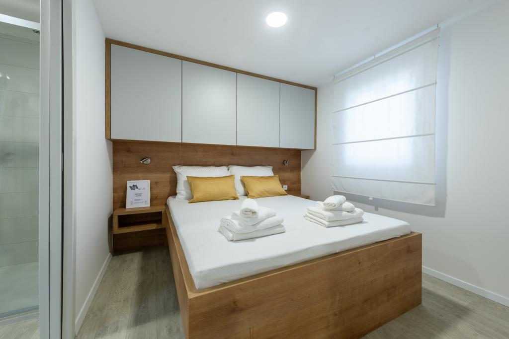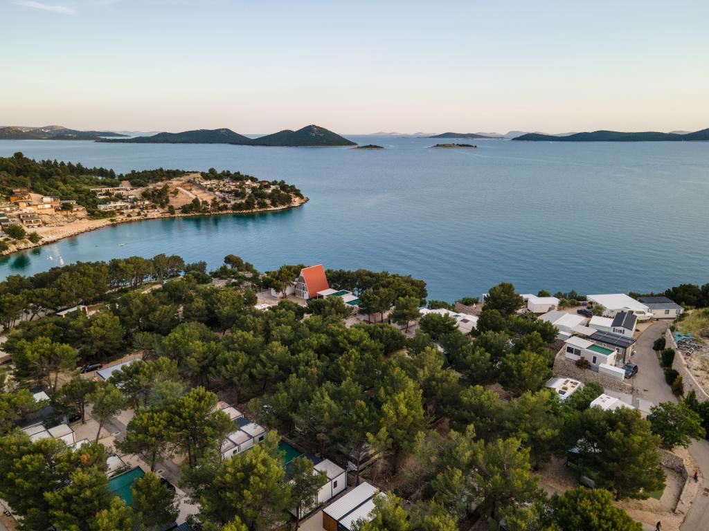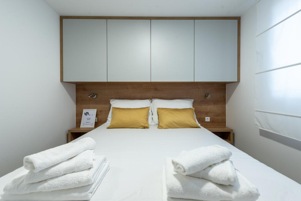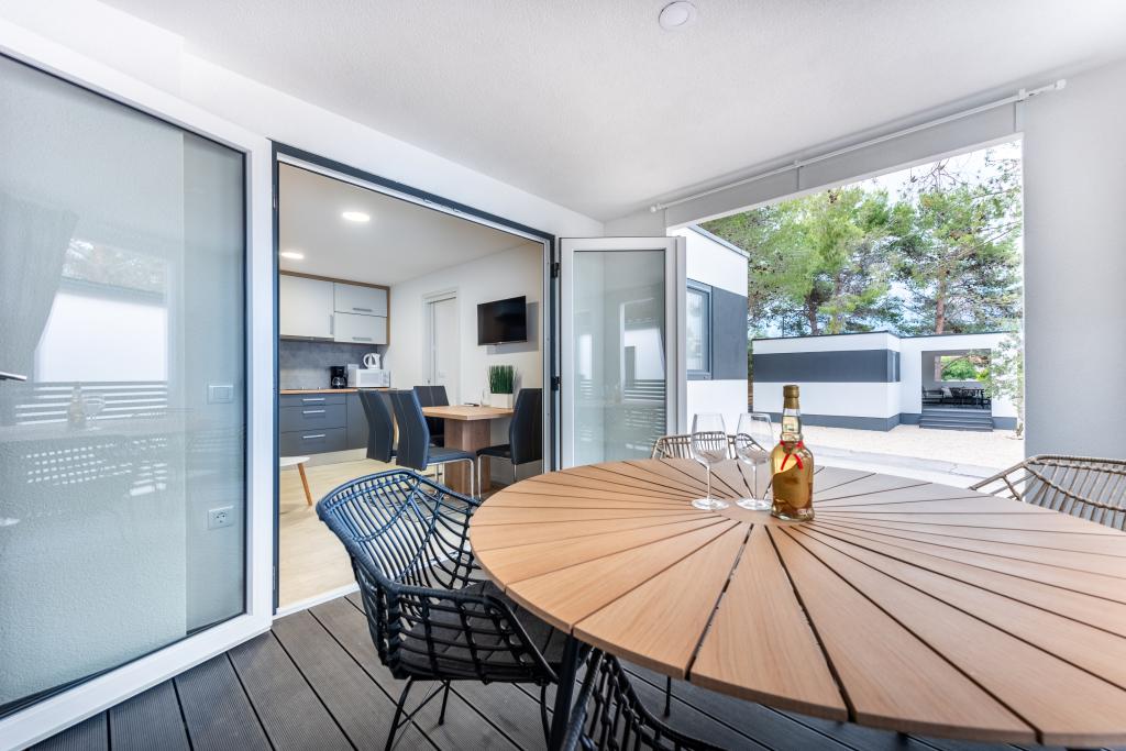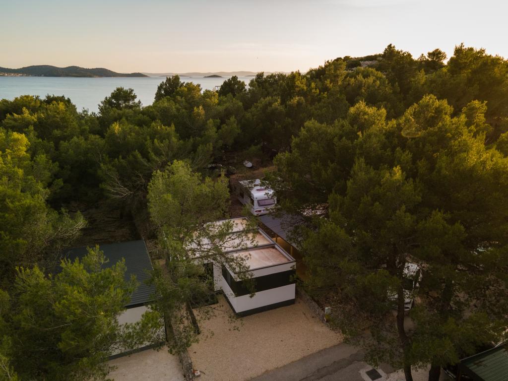 O casă mobilă luxoasă, dotată modern, cu o terasă frumoasă care va satisface toate gusturile. Casa mobila este situata in campingul "Oaza mira" intr-o locatie privilegiata intr-o padure de pini umbrita, la doar 50 m de frumoasa plaja. In imediata apropiere se afla o piscina mare si numeroase facilitati sportive (teren de tenis, teren de bocce, loc de joaca pentru copii). Tabăra are un restaurant, un supermarket și o unitate sanitară mare cu o spălătorie. Casele au fiecare două dormitoare, o cameră cu un pat dublu și o cameră cu două paturi de o persoană. În sufragerie, colțul poate servi drept pat suplimentar pentru încă două persoane. Casa are un living mare, o bucatarie cu vase, aragaz si frigider, si una/doua bai cu dus, chiuveta si toaleta. Casa mobilă are o grădină cu terasă și baldachin.