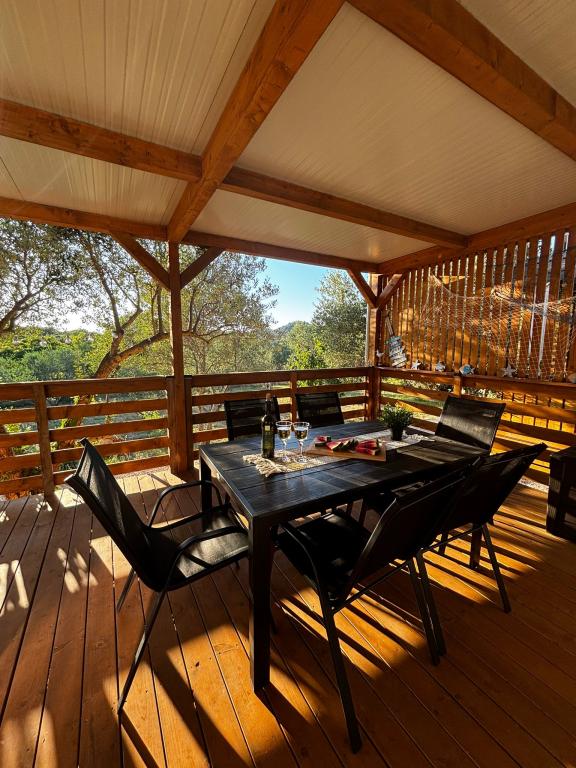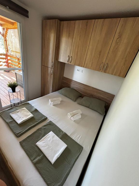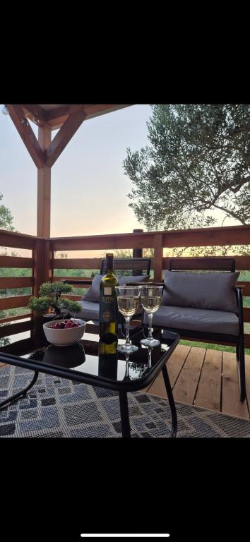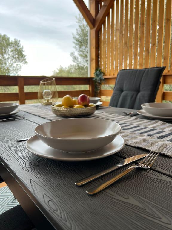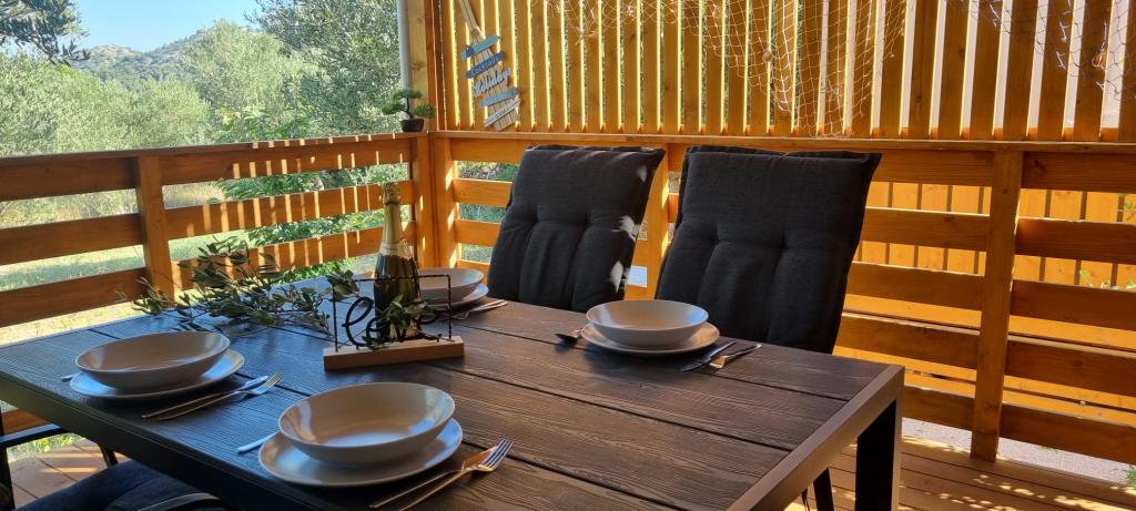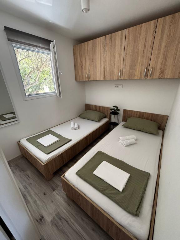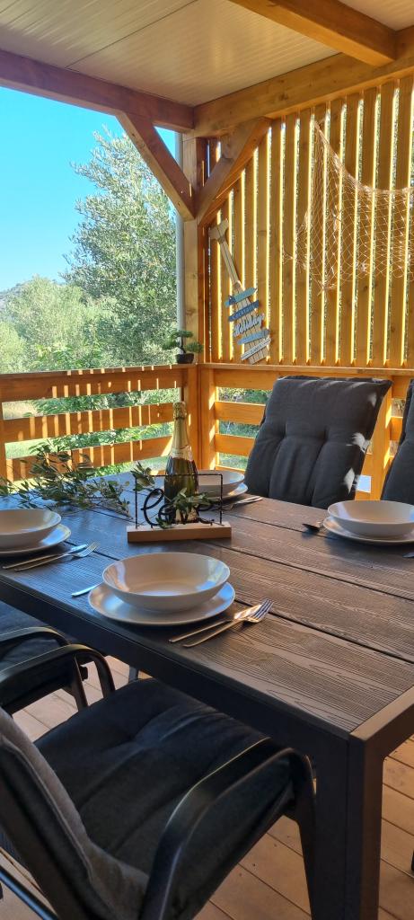 Olive Nest este o casă mobilă disponibilă din 2024. Casa este complet utilată, cu un design modern, măsurând 32 m2 și cu o terasă exterioară acoperită de 32 m2. Casa este dotată cu un dormitor cu pat dublu și o cameră cu două paturi de o persoană, care conține și un pat extensibil pentru două persoane. În interiorul unității de cazare se află o bucătărie cu zonă de luat masa și o baie (toaletă, duș, chiuvetă). Terasa acoperită oferă posibilitatea de a petrece o zi întreagă și de a vă relaxa. Există o masă în aer liber pe terasă. Veniți și experimentați o vacanță în inima Dalmației! ️- 1 cameră (pat dublu) - 2 camere (două paturi de o persoană) - pat extensibil pentru două persoane - pătuț portabil pentru un copil cu vârsta de până la 2 ani. -️ 1 baie (duș și chiuvetă) ️- terasă mare 32m2, cu o masă pentru 6 persoane și o zonă de relaxare ️- Wi-Fi ️- TV ️- mașină de spălat vase ️- grătar electric - duș exterior ️- bucătărie utilată - parcare gratuită - aspirator - uscător de păr - mașină de spălat rufe