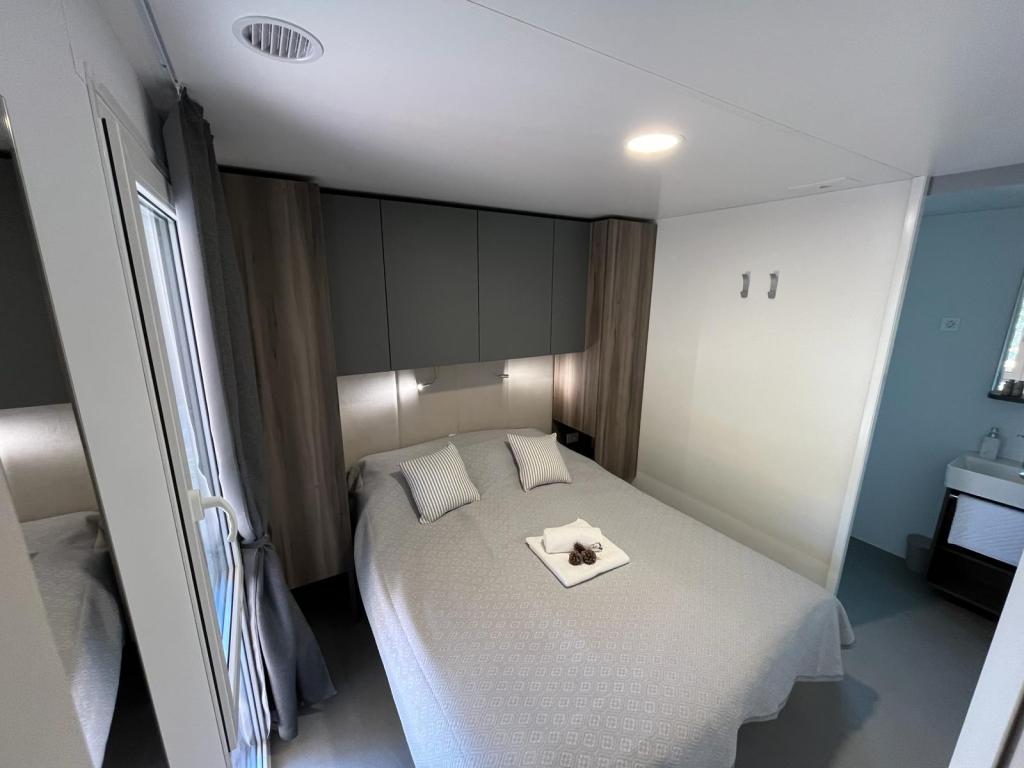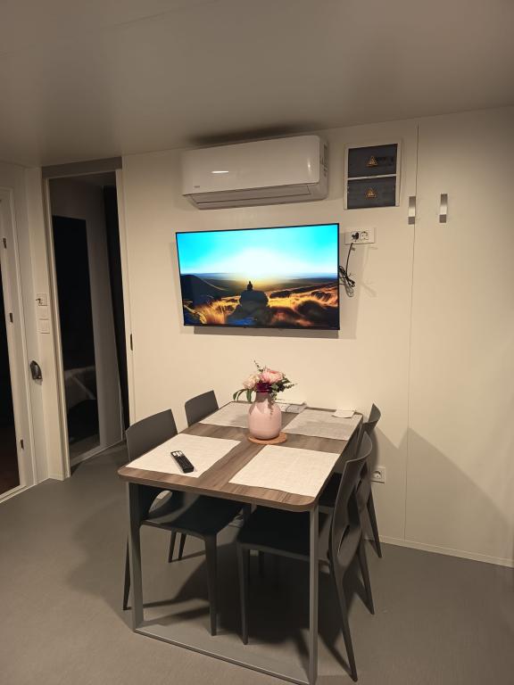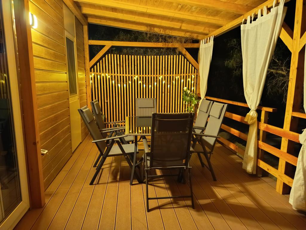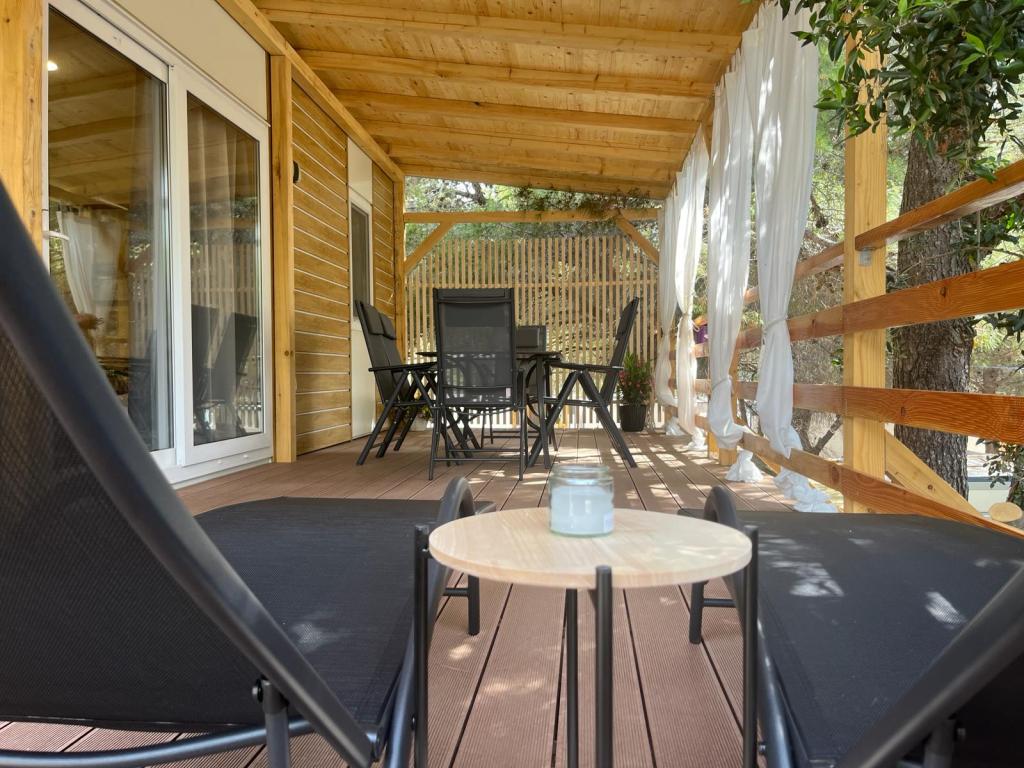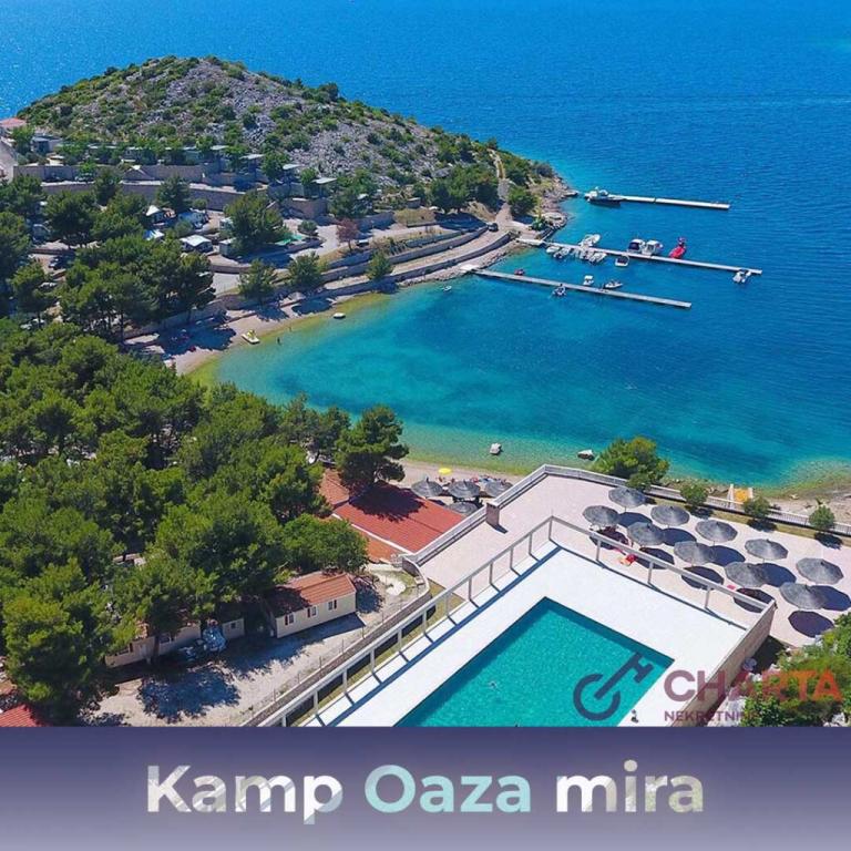 Rulotă de 35m2 cu o terasă de 24m2, nouă, complet utilată, situată în tabăra Oaza Mira. Tabăra este clasificată la 4****. În cadrul taberei există o instalație sanitară cu posibilitatea de a folosi o mașină de spălat, terenuri de tenis, loc de joacă pentru copii, restaurant, cafenele, piscină. În apropierea taberei există și mai multe plaje cu steag albastru, un port de agrement și promenade. Distanța față de camping: - Pakoštane 4 km - Biograd na Moru - Lacul Vrana 3 km - Zadar 39 km - Parcul Național Krka 36 km - Šibenik 24 km - Vodice 20 km Casa oferă: - o cameră cu pat dublu 160x200 cm - o cameră cu două paturi de o persoană 90x200cm - un living cu canapea extensibilă pentru 2 persoane - 2 băi cu duș și toaletă - o bucătărie utilată pentru 6 persoane - frigider cu congelator - fierbător electric - plită vitroceramică cu 4 ochiuri pe gaz - mașină de spălat vase - Wi-Fi, Smart TV + Netflix - masă + 4 scaune - 2 șezlonguri, o masă și 6 scaune - 2 locuri de parcare în fața rulotei, - lenjerie de pat și prosoape
